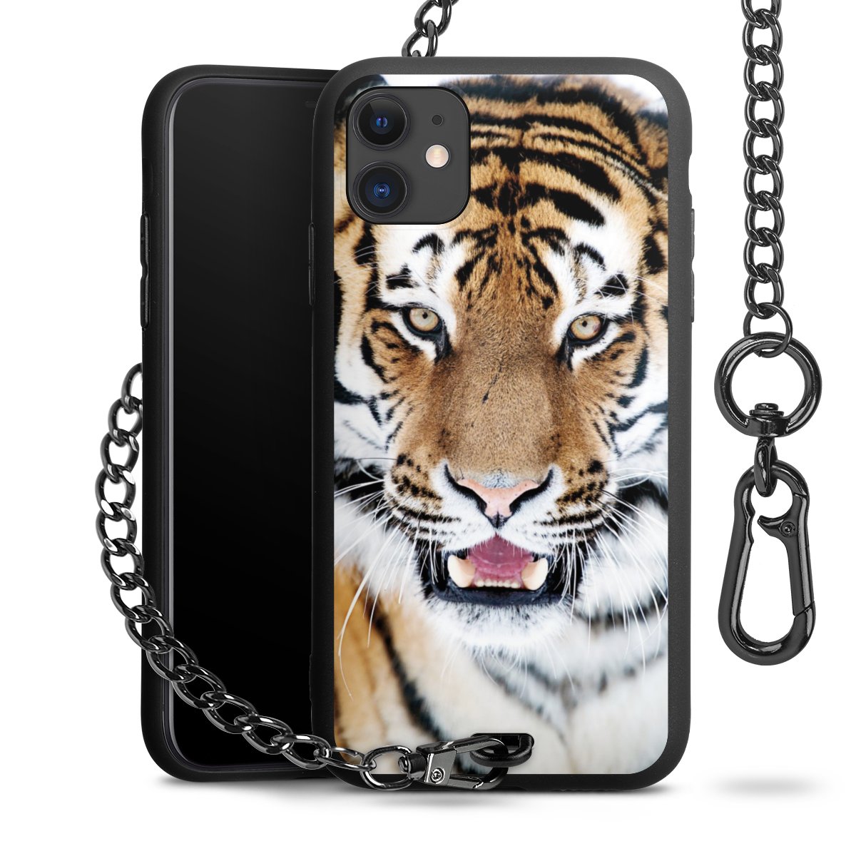 Die mattschwarze Silikon-Handyhülle besteht aus robustem TPU (thermoplastisches Polyurethan). Sie ist flexibel und schützt Dein Smartphone vor Stößen und Kratzern. Die Kette sowie der Karabinerhaken sind aus Metall in Gunmetal-Optik gefertigt. Für dieses Produkt kommen ausschließlich TÜV-geprüfte Materialien zum Einsatz.