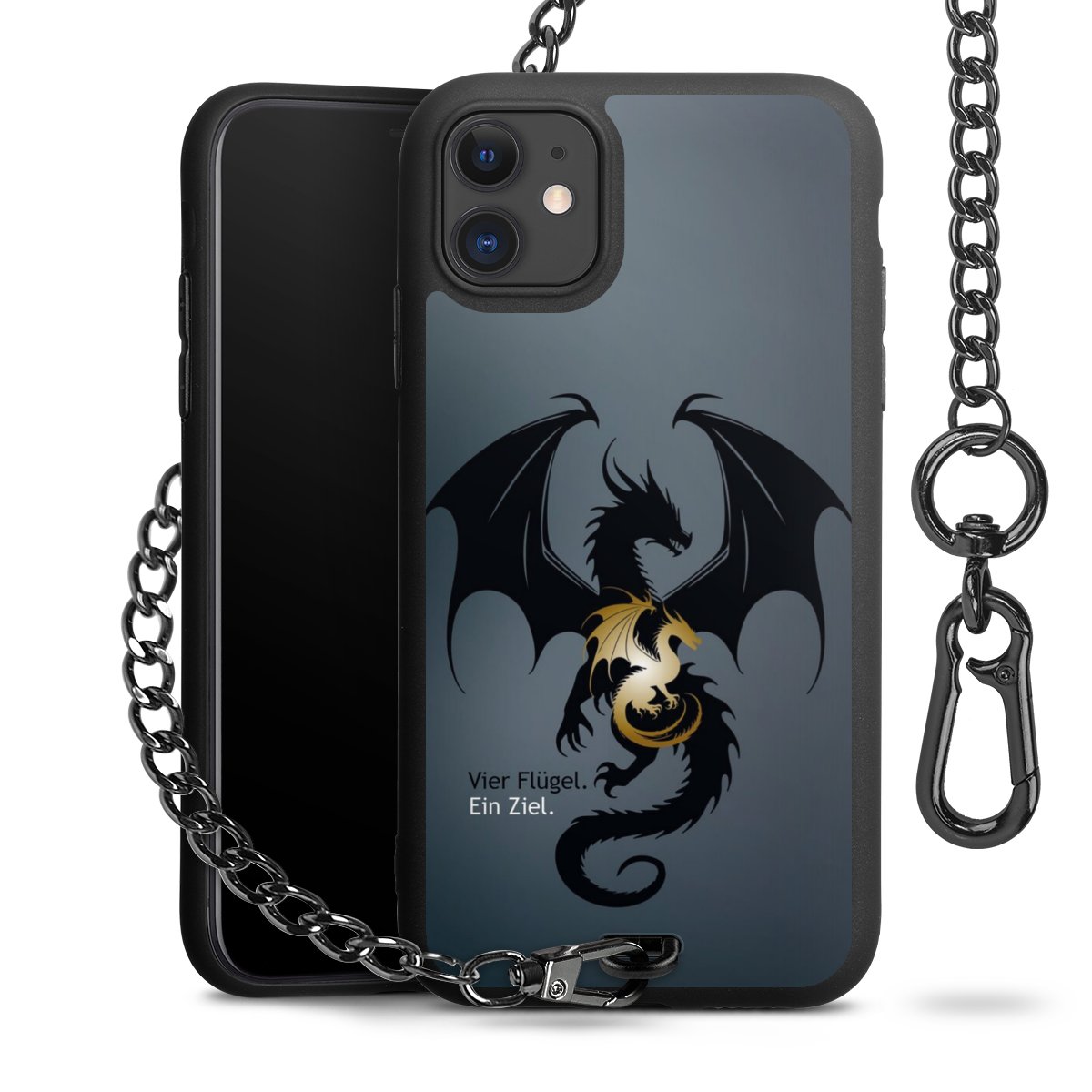 - Mattschwarze Handyhülle mit Metallkette