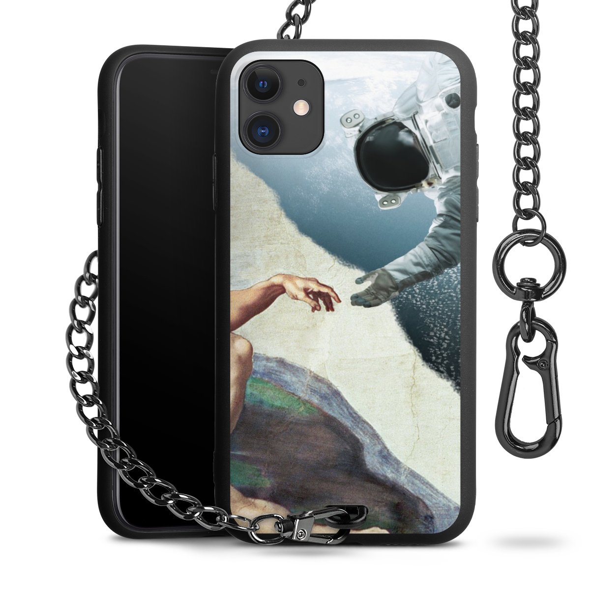 - Mattschwarze Handyhülle mit Metallkette