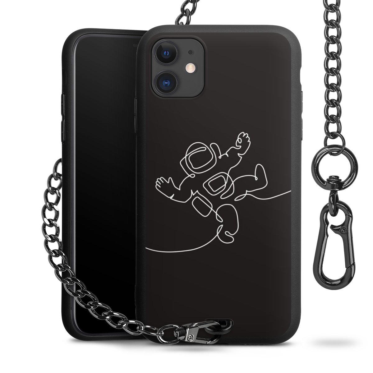 - Mattschwarze Handyhülle mit Metallkette