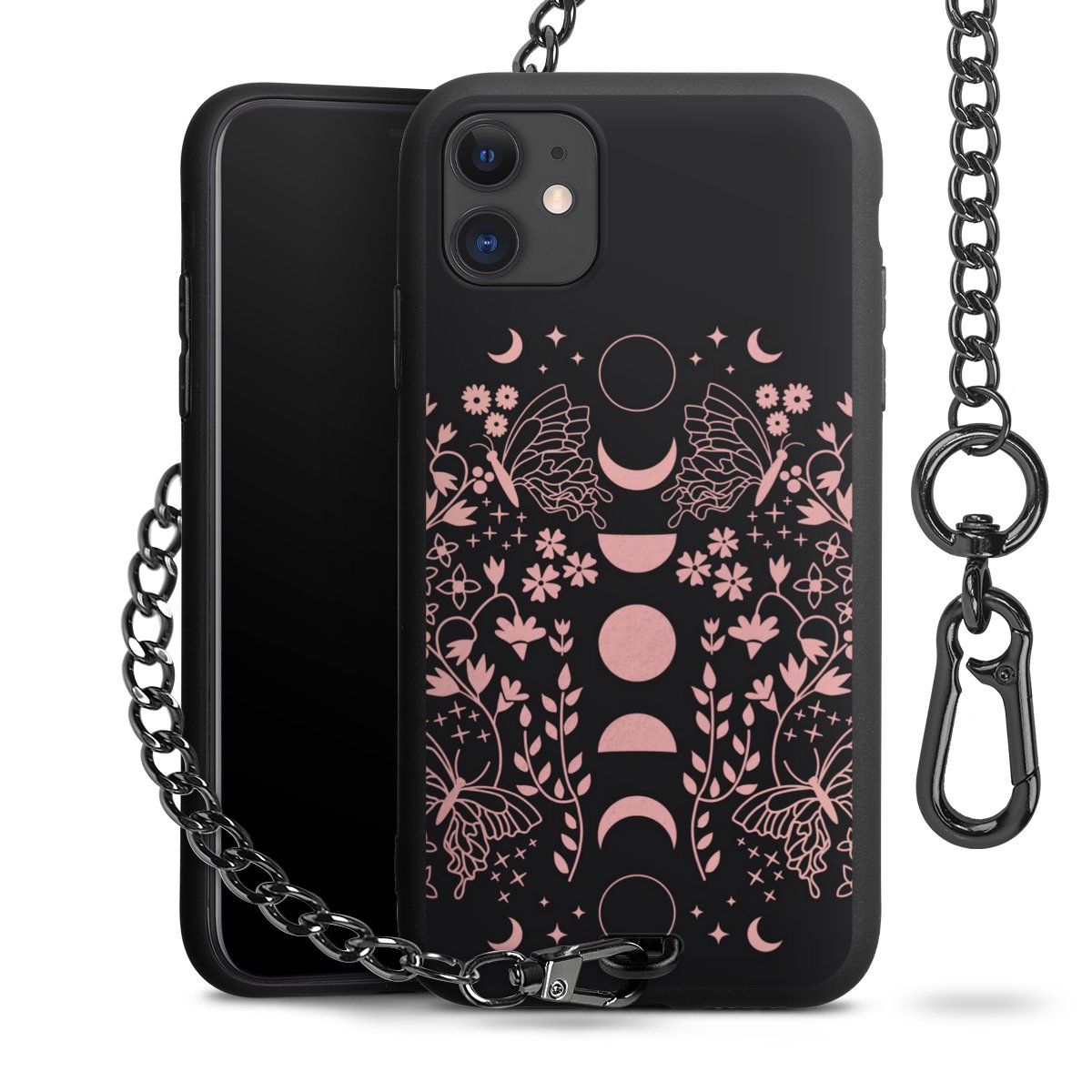 • Mattschwarze Handyhülle mit Metallkette
