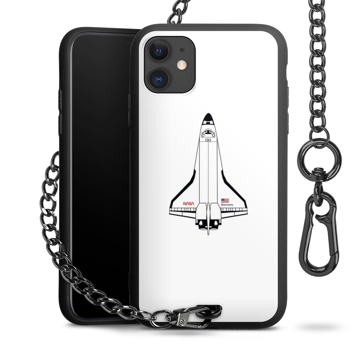 - Mattschwarze Handyhülle mit Metallkette