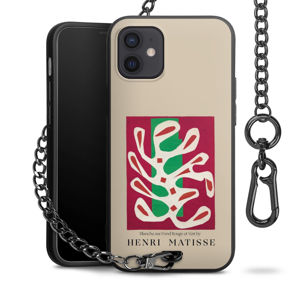- Mattschwarze Handyhülle mit Metallkette