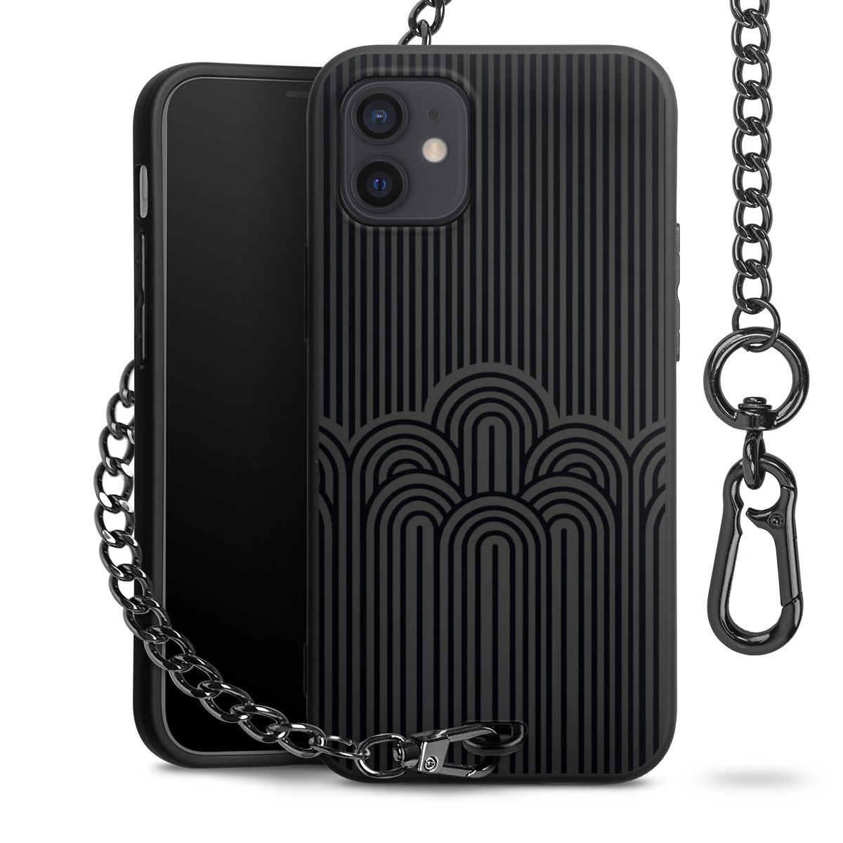• Mattschwarze Handyhülle mit Metallkette