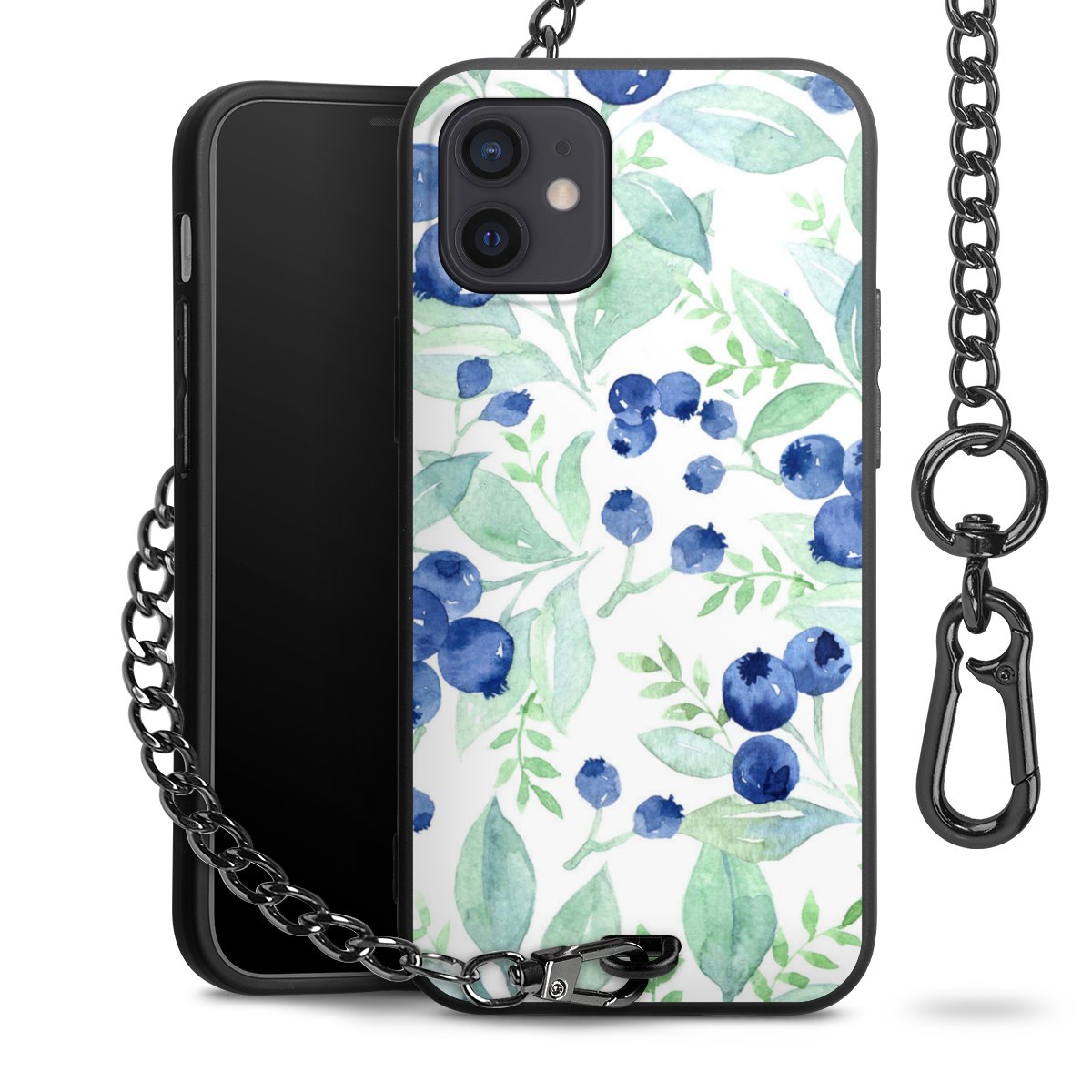• Mattschwarze Handyhülle mit Metallkette