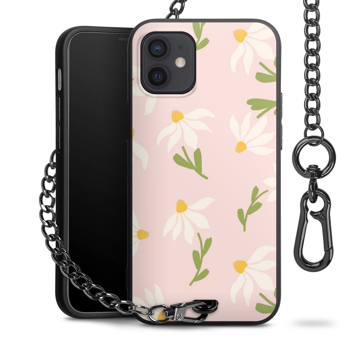 • Mattschwarze Handyhülle mit Metallkette