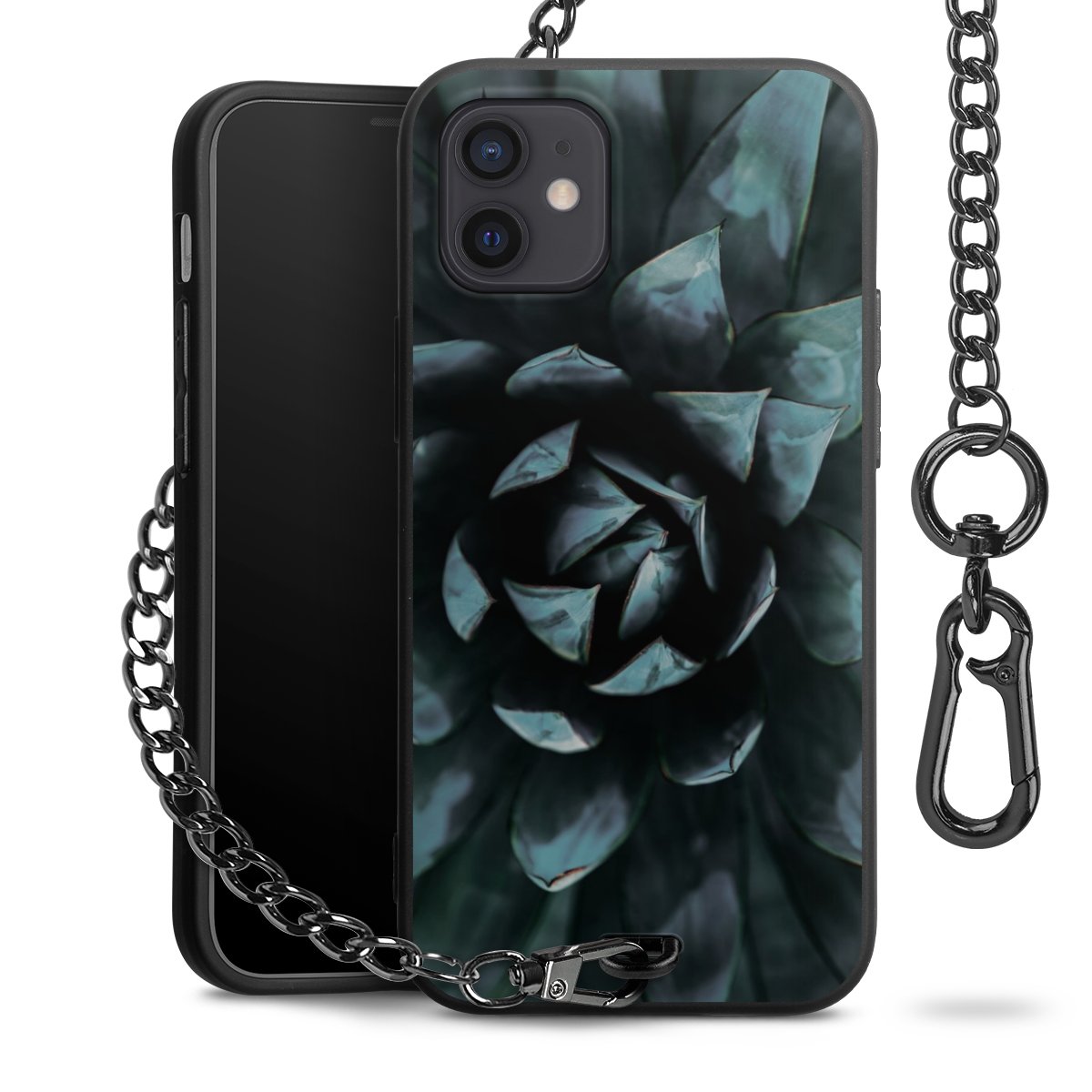 • Mattschwarze Handyhülle mit Metallkette