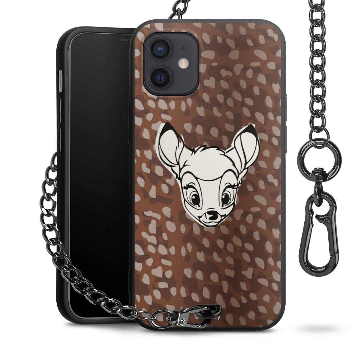 Die Handyhülle verfügt über eine mittig am unteren Rand platzierte Öse, an der die Metallkette stabil befestigt ist. Bestelle die Hülle einfach für Dein Smartphone-Modell, dann passt sie wie angegossen und Du brauchst sie bloß einmal anzudrücken. Handy in die Tasche, Karabiner an den Hosenbund – schon kann die Party starten.