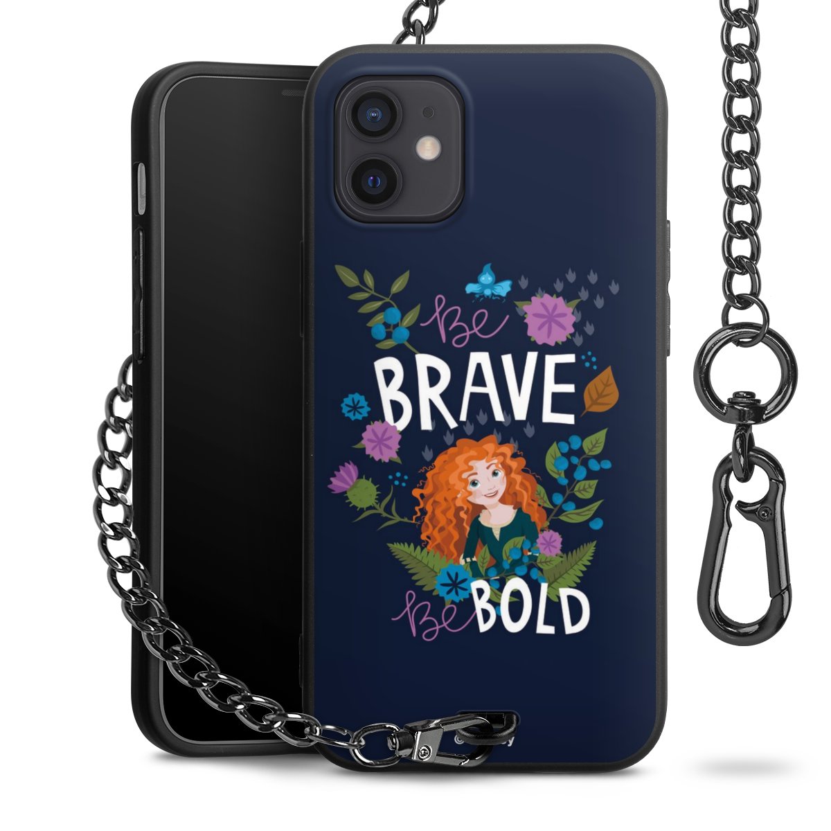 - Mattschwarze Handyhülle mit Metallkette