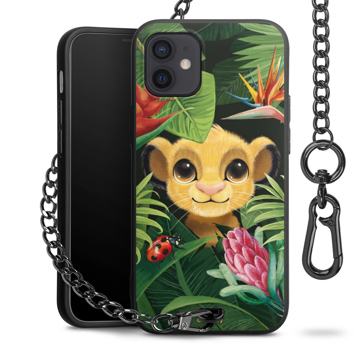 Die Handyhülle verfügt über eine mittig am unteren Rand platzierte Öse, an der die Metallkette stabil befestigt ist. Bestelle die Hülle einfach für Dein Smartphone-Modell, dann passt sie wie angegossen und Du brauchst sie bloß einmal anzudrücken. Handy in die Tasche, Karabiner an den Hosenbund – schon kann die Party starten.