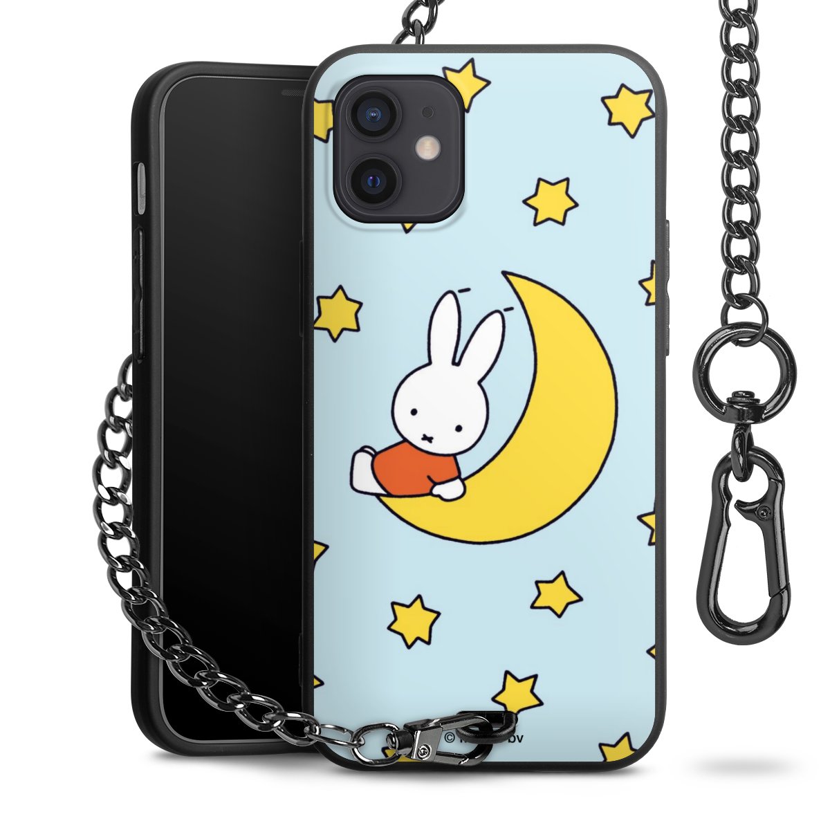 Die Handyhülle verfügt über eine mittig am unteren Rand platzierte Öse, an der die Metallkette stabil befestigt ist. Bestelle die Hülle einfach für Dein Smartphone-Modell, dann passt sie wie angegossen und Du brauchst sie bloß einmal anzudrücken. Handy in die Tasche, Karabiner an den Hosenbund – schon kann die Party starten.