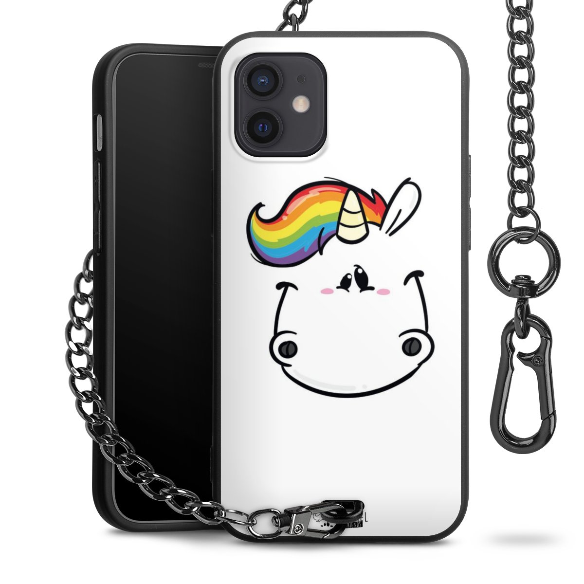Die mattschwarze Silikon-Handyhülle besteht aus robustem TPU (thermoplastisches Polyurethan). Sie ist flexibel und schützt Dein Smartphone vor Stößen und Kratzern. Die Kette sowie der Karabinerhaken sind aus Metall in Gunmetal-Optik gefertigt. Für dieses Produkt kommen ausschließlich TÜV-geprüfte Materialien zum Einsatz.