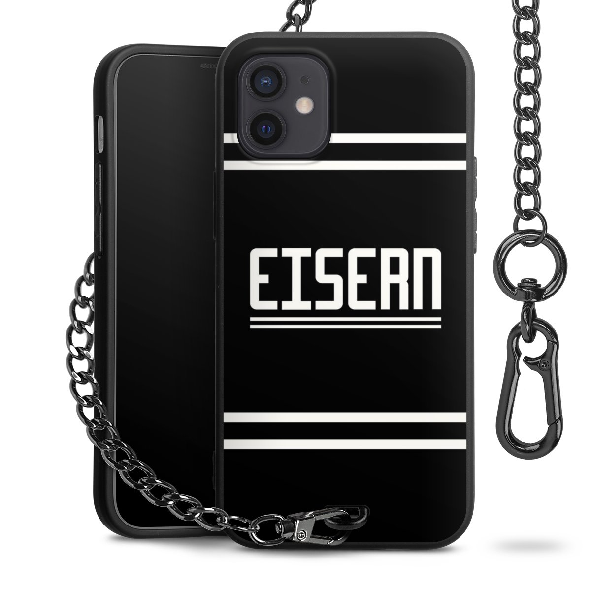 • Mattschwarze Handyhülle mit Metallkette