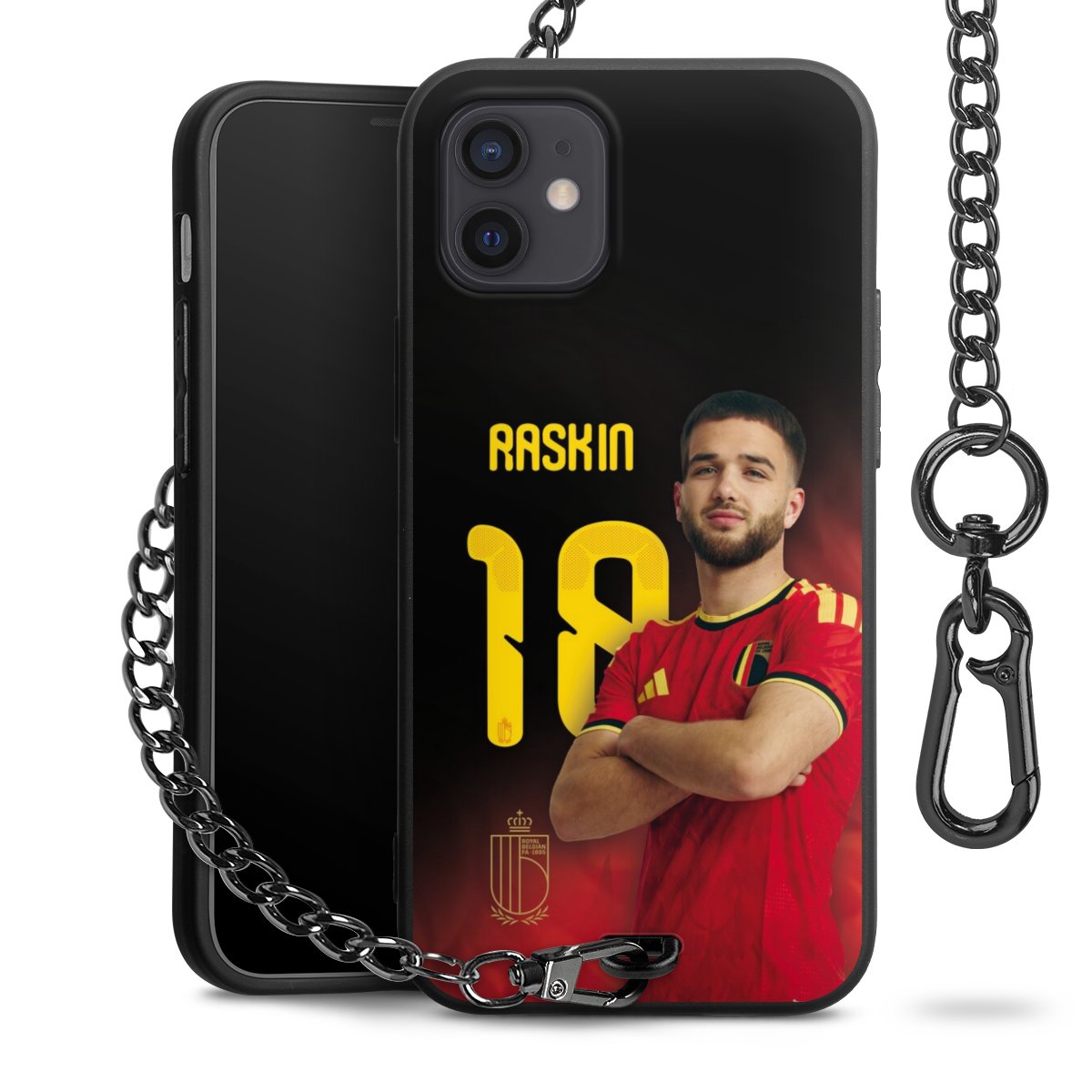 Die mattschwarze Silikon-Handyhülle besteht aus robustem TPU (thermoplastisches Polyurethan). Sie ist flexibel und schützt Dein Smartphone vor Stößen und Kratzern. Die Kette sowie der Karabinerhaken sind aus Metall in Gunmetal-Optik gefertigt. Für dieses Produkt kommen ausschließlich TÜV-geprüfte Materialien zum Einsatz.