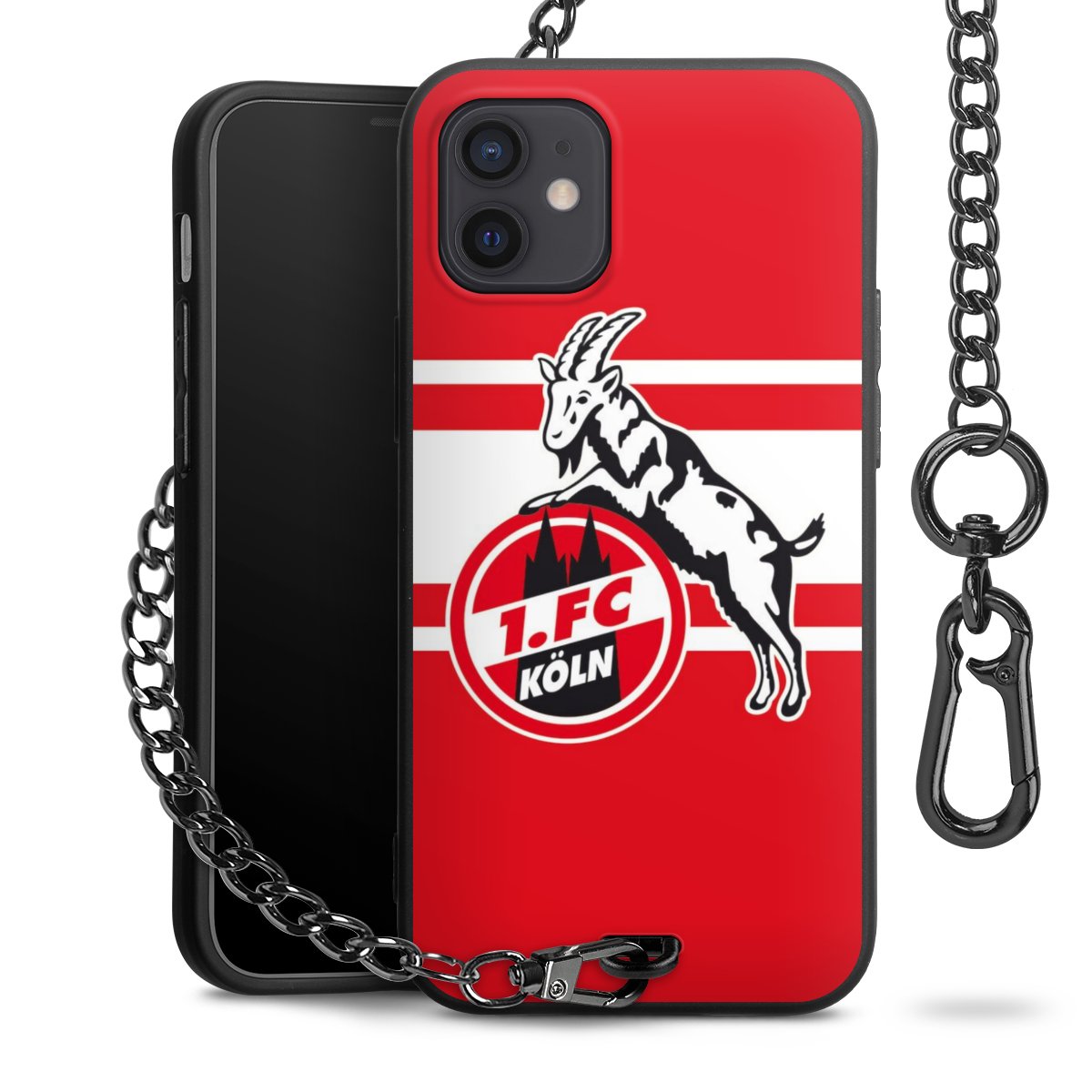 Die Handyhülle verfügt über eine mittig am unteren Rand platzierte Öse, an der die Metallkette stabil befestigt ist. Bestelle die Hülle einfach für Dein Smartphone-Modell, dann passt sie wie angegossen und Du brauchst sie bloß einmal anzudrücken. Handy in die Tasche, Karabiner an den Hosenbund – schon kann die Party starten.