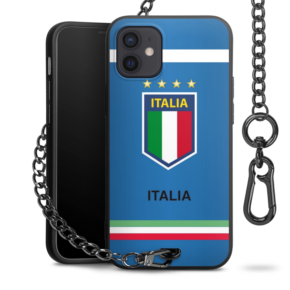 Die Handyhülle verfügt über eine mittig am unteren Rand platzierte Öse, an der die Metallkette stabil befestigt ist. Bestelle die Hülle einfach für Dein Smartphone-Modell, dann passt sie wie angegossen und Du brauchst sie bloß einmal anzudrücken. Handy in die Tasche, Karabiner an den Hosenbund – schon kann die Party starten.