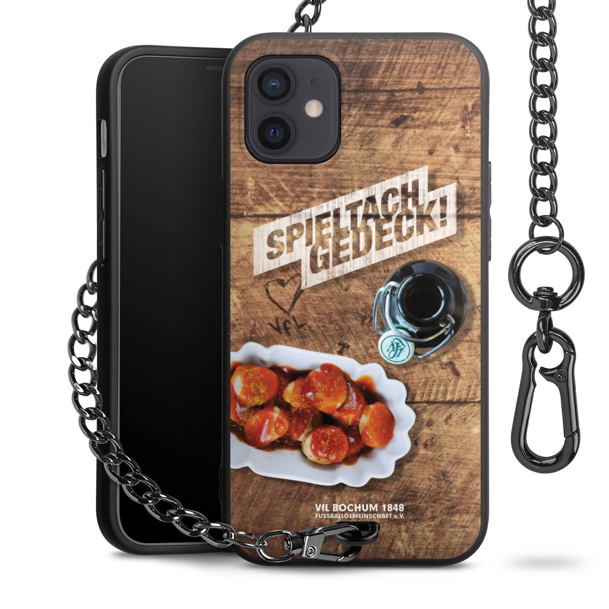 Die mattschwarze Silikon-Handyhülle besteht aus robustem TPU (thermoplastisches Polyurethan). Sie ist flexibel und schützt Dein Smartphone vor Stößen und Kratzern. Die Kette sowie der Karabinerhaken sind aus Metall in Gunmetal-Optik gefertigt. Für dieses Produkt kommen ausschließlich TÜV-geprüfte Materialien zum Einsatz.