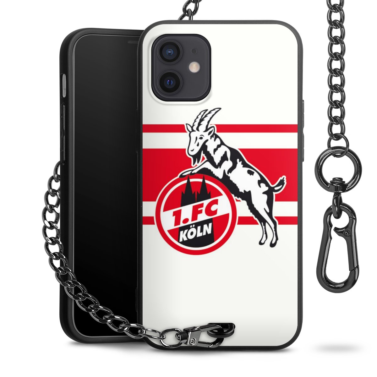 Die Handyhülle verfügt über eine mittig am unteren Rand platzierte Öse, an der die Metallkette stabil befestigt ist. Bestelle die Hülle einfach für Dein Smartphone-Modell, dann passt sie wie angegossen und Du brauchst sie bloß einmal anzudrücken. Handy in die Tasche, Karabiner an den Hosenbund – schon kann die Party starten.