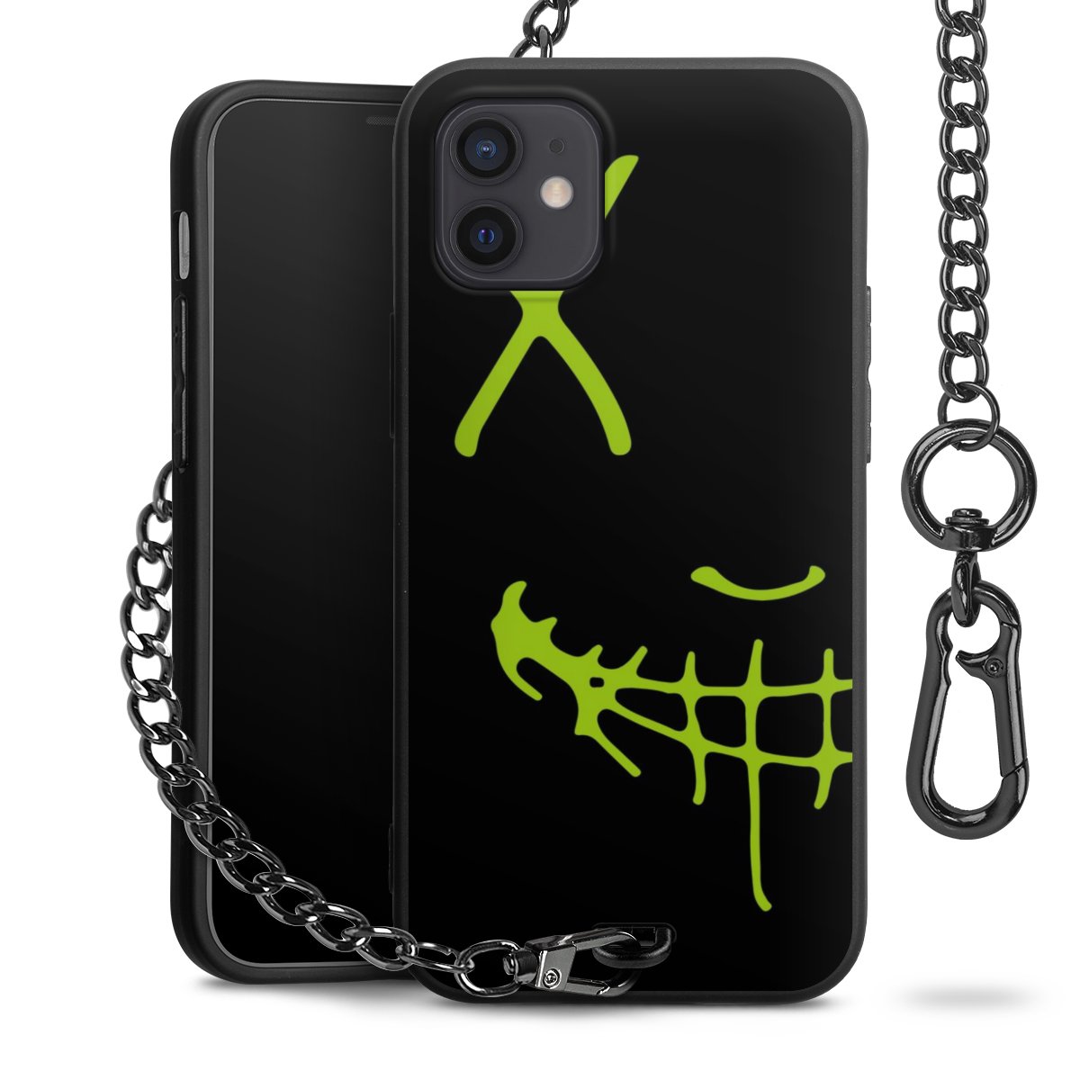 Die mattschwarze Silikon-Handyhülle besteht aus robustem TPU (thermoplastisches Polyurethan). Sie ist flexibel und schützt Dein Smartphone vor Stößen und Kratzern. Die Kette sowie der Karabinerhaken sind aus Metall in Gunmetal-Optik gefertigt. Für dieses Produkt kommen ausschließlich TÜV-geprüfte Materialien zum Einsatz.