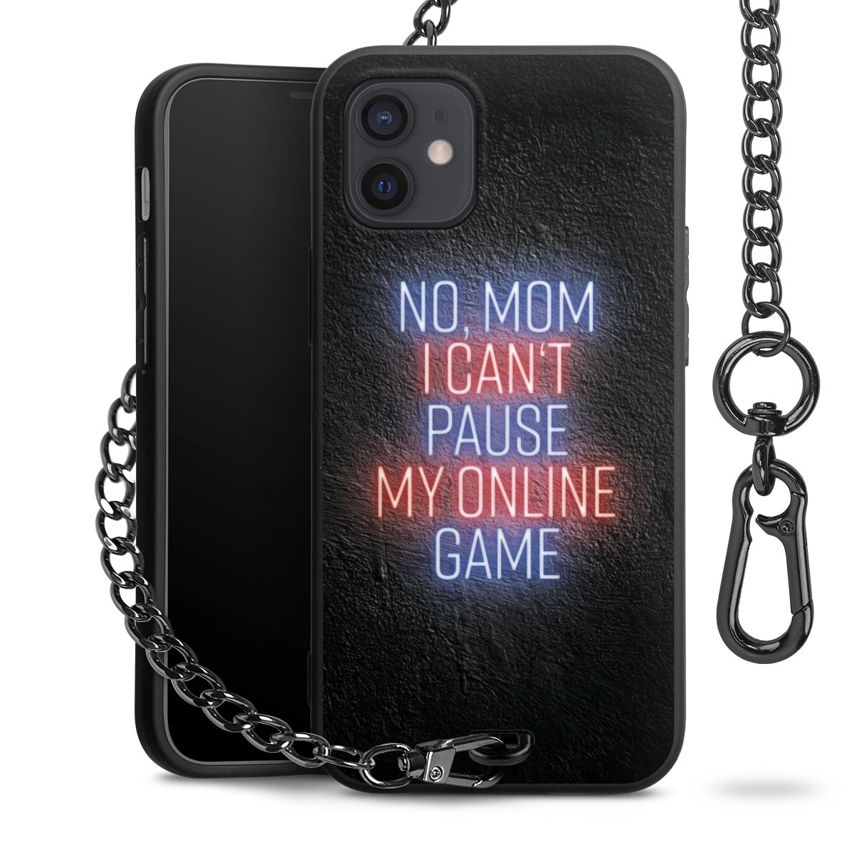 Die mattschwarze Silikon-Handyhülle besteht aus robustem TPU (thermoplastisches Polyurethan). Sie ist flexibel und schützt Dein Smartphone vor Stößen und Kratzern. Die Kette sowie der Karabinerhaken sind aus Metall in Gunmetal-Optik gefertigt. Für dieses Produkt kommen ausschließlich TÜV-geprüfte Materialien zum Einsatz.