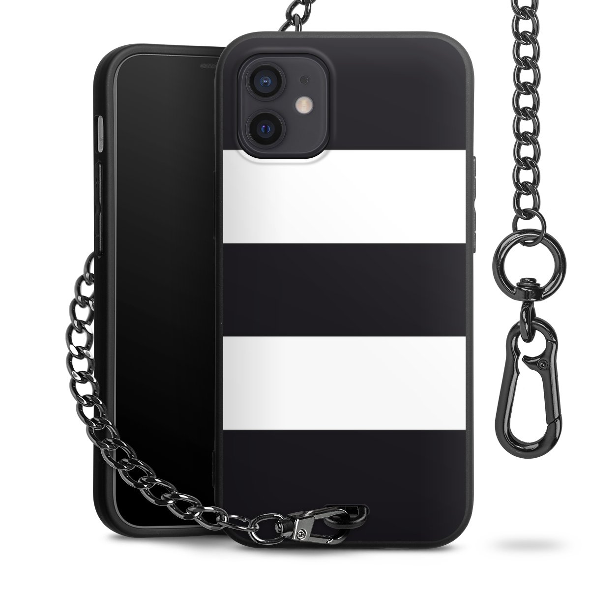 - Mattschwarze Handyhülle mit Metallkette