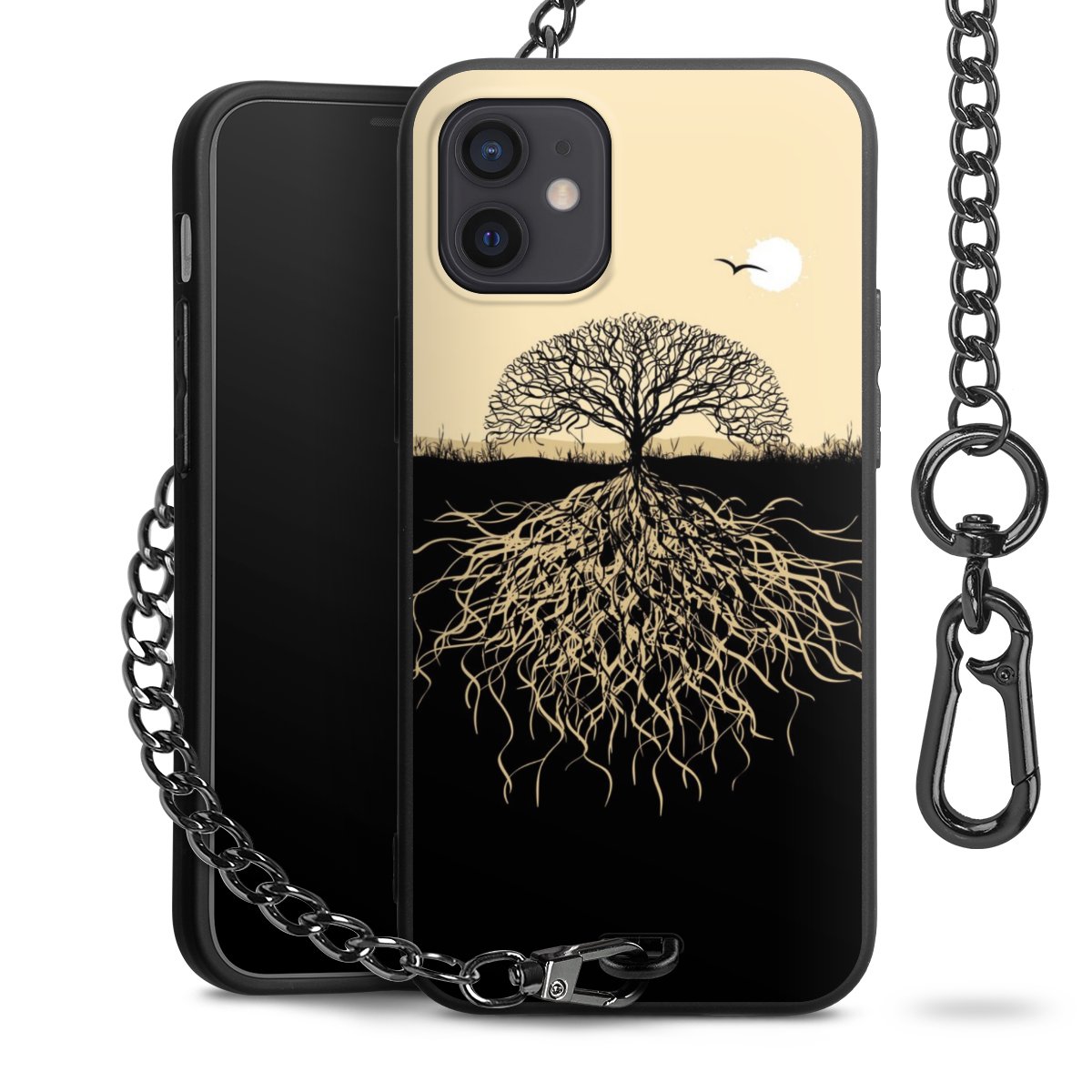Die mattschwarze Silikon-Handyhülle besteht aus robustem TPU (thermoplastisches Polyurethan). Sie ist flexibel und schützt Dein Smartphone vor Stößen und Kratzern. Die Kette sowie der Karabinerhaken sind aus Metall in Gunmetal-Optik gefertigt. Für dieses Produkt kommen ausschließlich TÜV-geprüfte Materialien zum Einsatz.