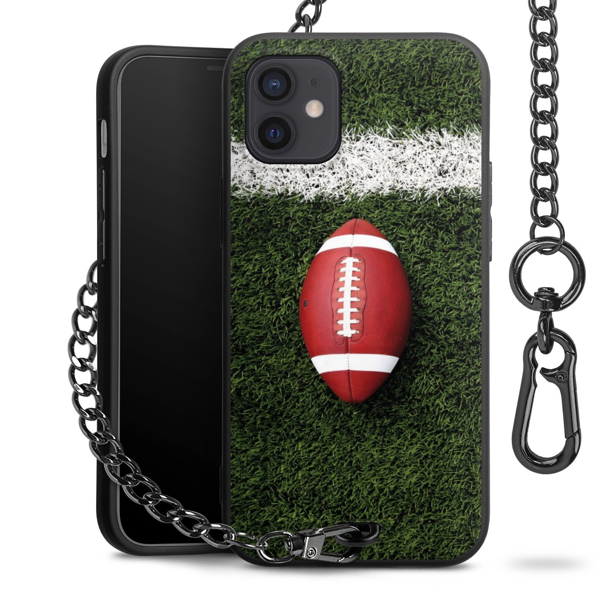 - Mattschwarze Handyhülle mit Metallkette