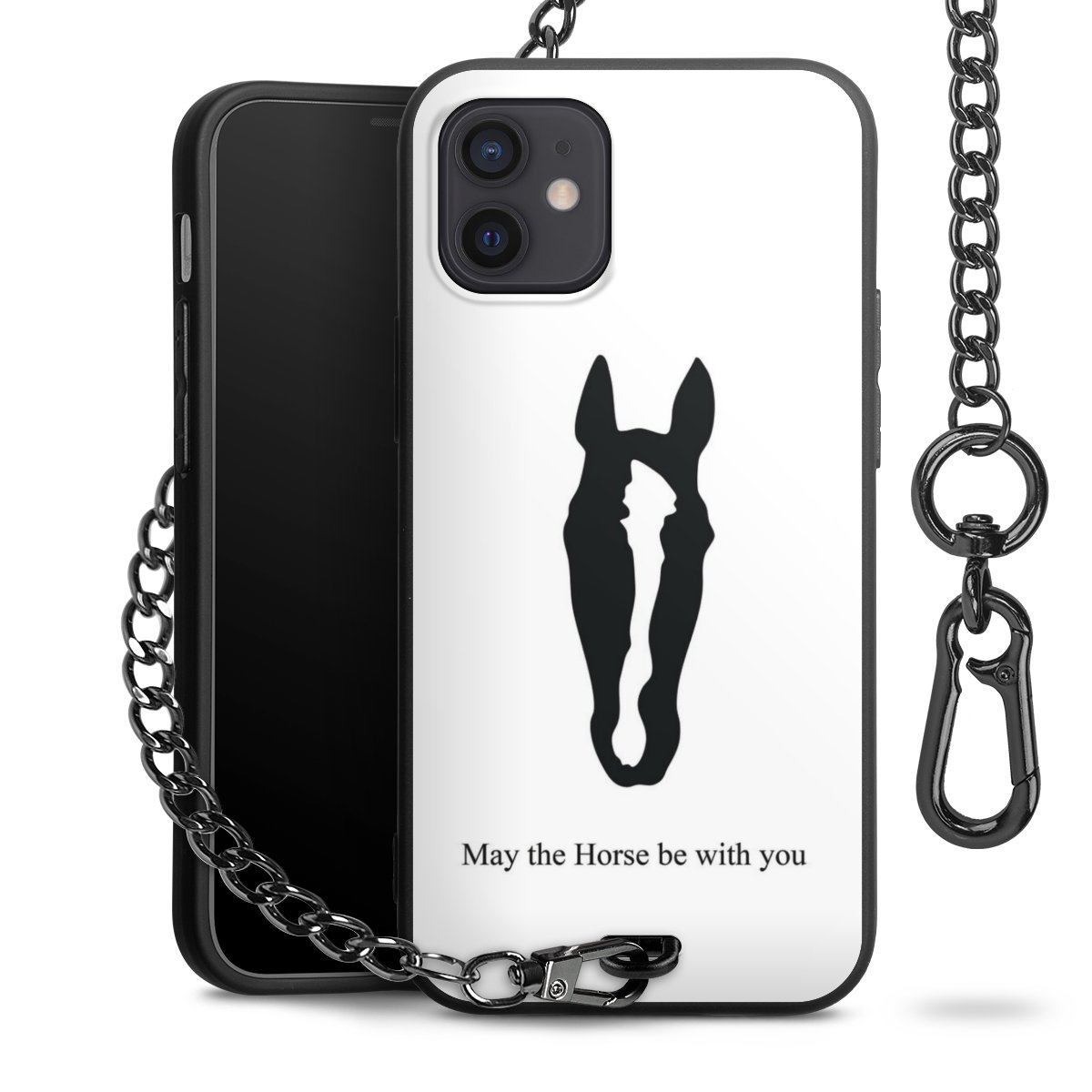 - Mattschwarze Handyhülle mit Metallkette