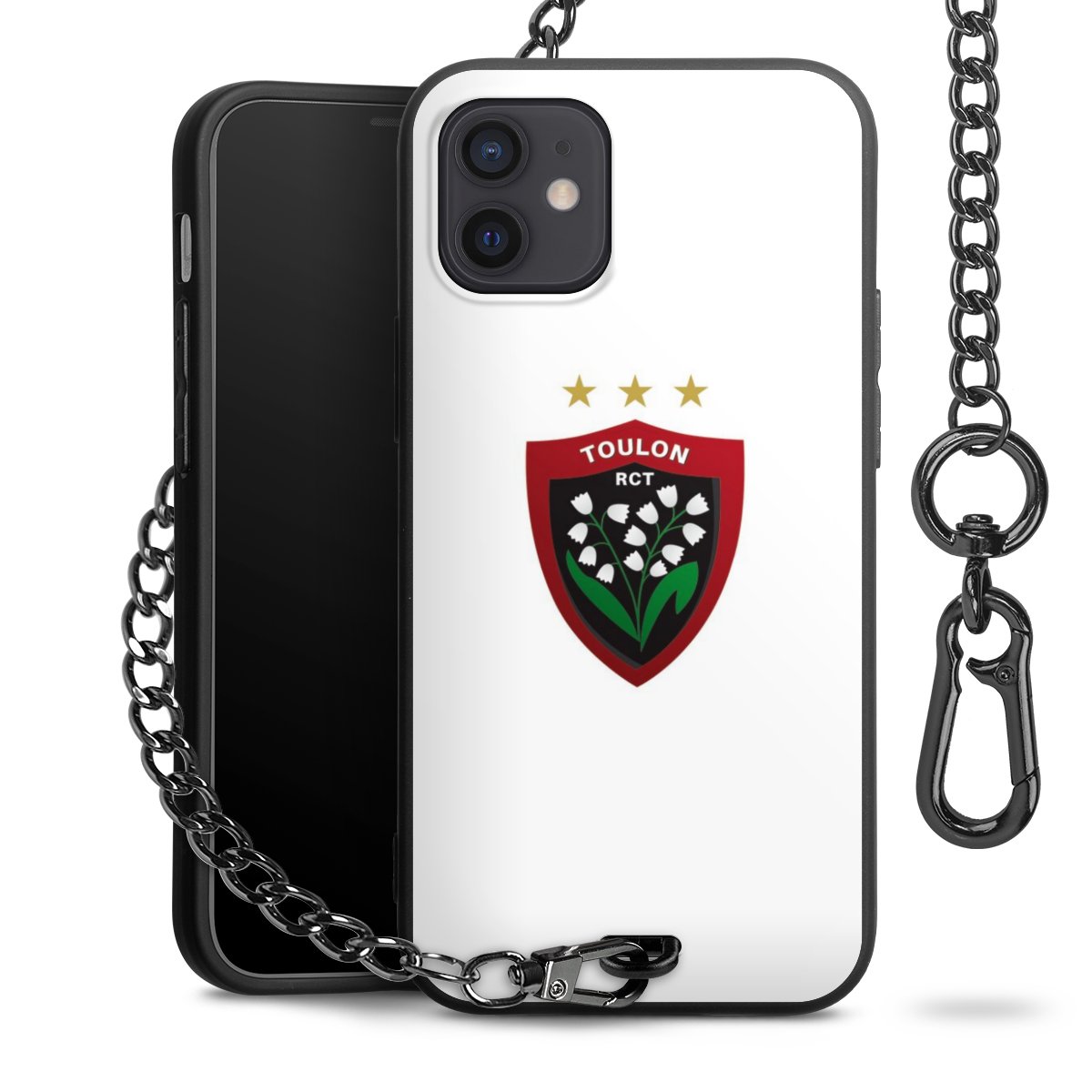 Die mattschwarze Silikon-Handyhülle besteht aus robustem TPU (thermoplastisches Polyurethan). Sie ist flexibel und schützt Dein Smartphone vor Stößen und Kratzern. Die Kette sowie der Karabinerhaken sind aus Metall in Gunmetal-Optik gefertigt. Für dieses Produkt kommen ausschließlich TÜV-geprüfte Materialien zum Einsatz.