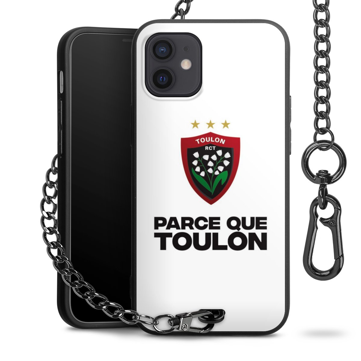 - Mattschwarze Handyhülle mit Metallkette