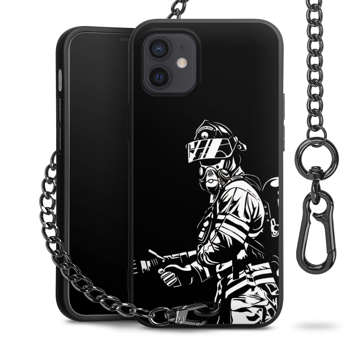 Die mattschwarze Silikon-Handyhülle besteht aus robustem TPU (thermoplastisches Polyurethan). Sie ist flexibel und schützt Dein Smartphone vor Stößen und Kratzern. Die Kette sowie der Karabinerhaken sind aus Metall in Gunmetal-Optik gefertigt. Für dieses Produkt kommen ausschließlich TÜV-geprüfte Materialien zum Einsatz.