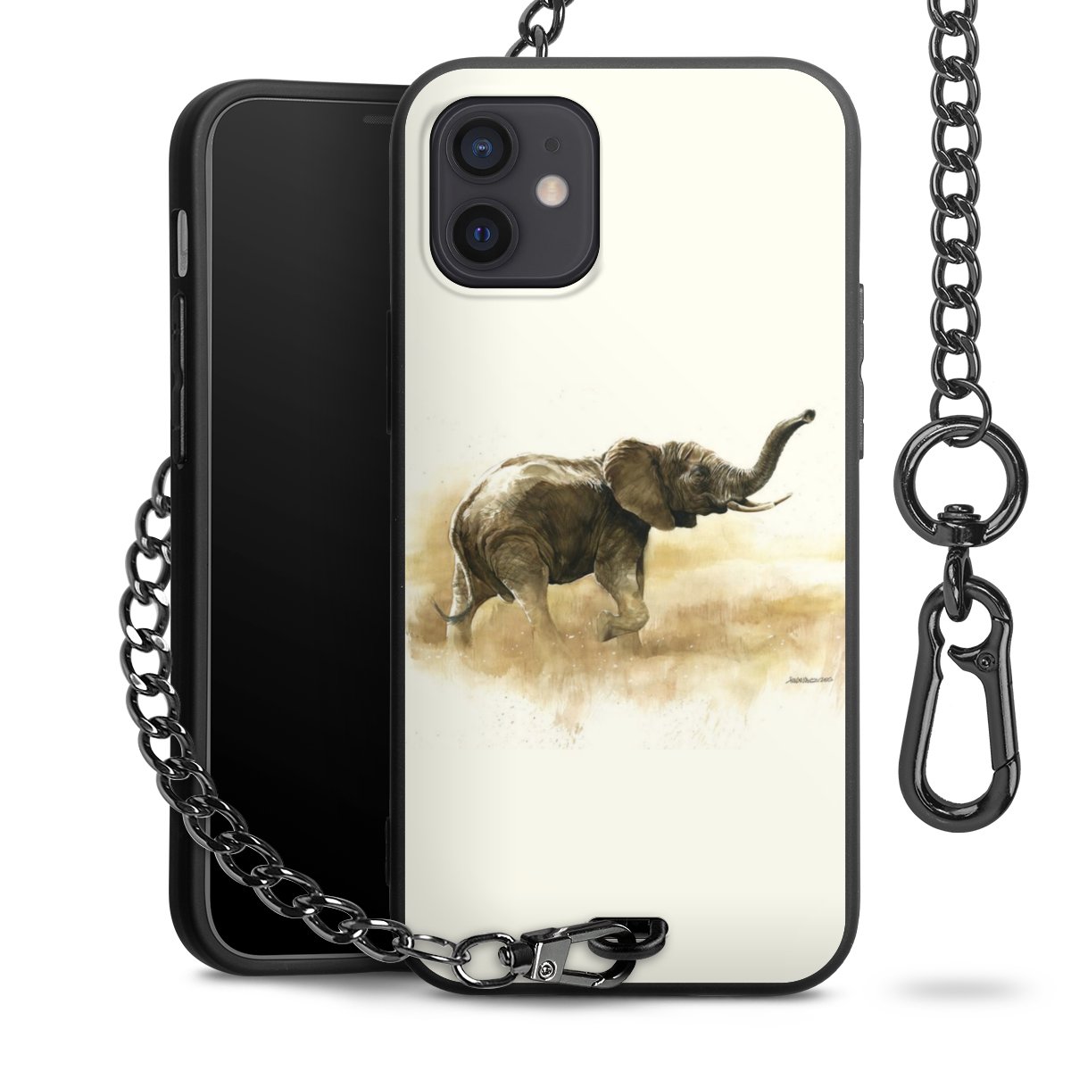 Die mattschwarze Silikon-Handyhülle besteht aus robustem TPU (thermoplastisches Polyurethan). Sie ist flexibel und schützt Dein Smartphone vor Stößen und Kratzern. Die Kette sowie der Karabinerhaken sind aus Metall in Gunmetal-Optik gefertigt. Für dieses Produkt kommen ausschließlich TÜV-geprüfte Materialien zum Einsatz.