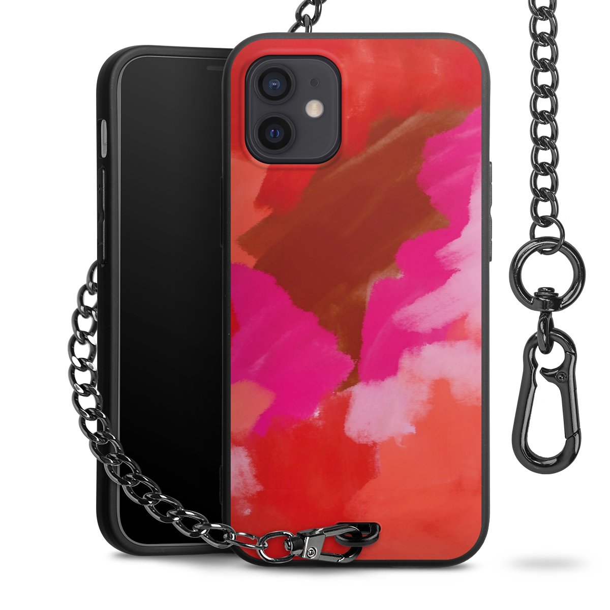 • Mattschwarze Handyhülle mit Metallkette