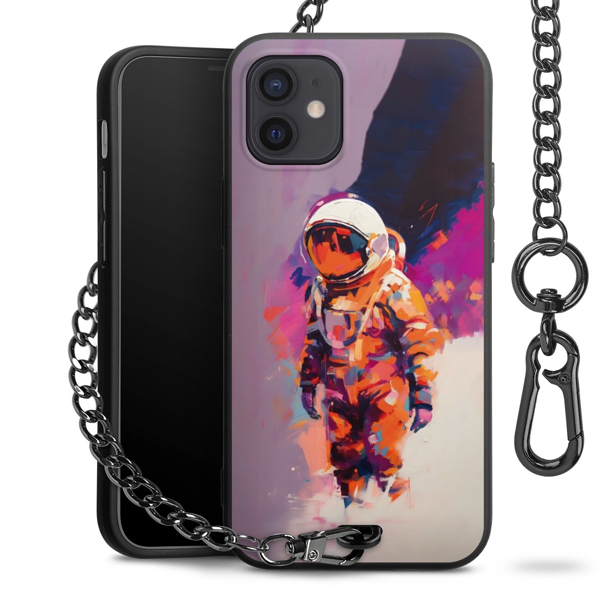 • Mattschwarze Handyhülle mit Metallkette