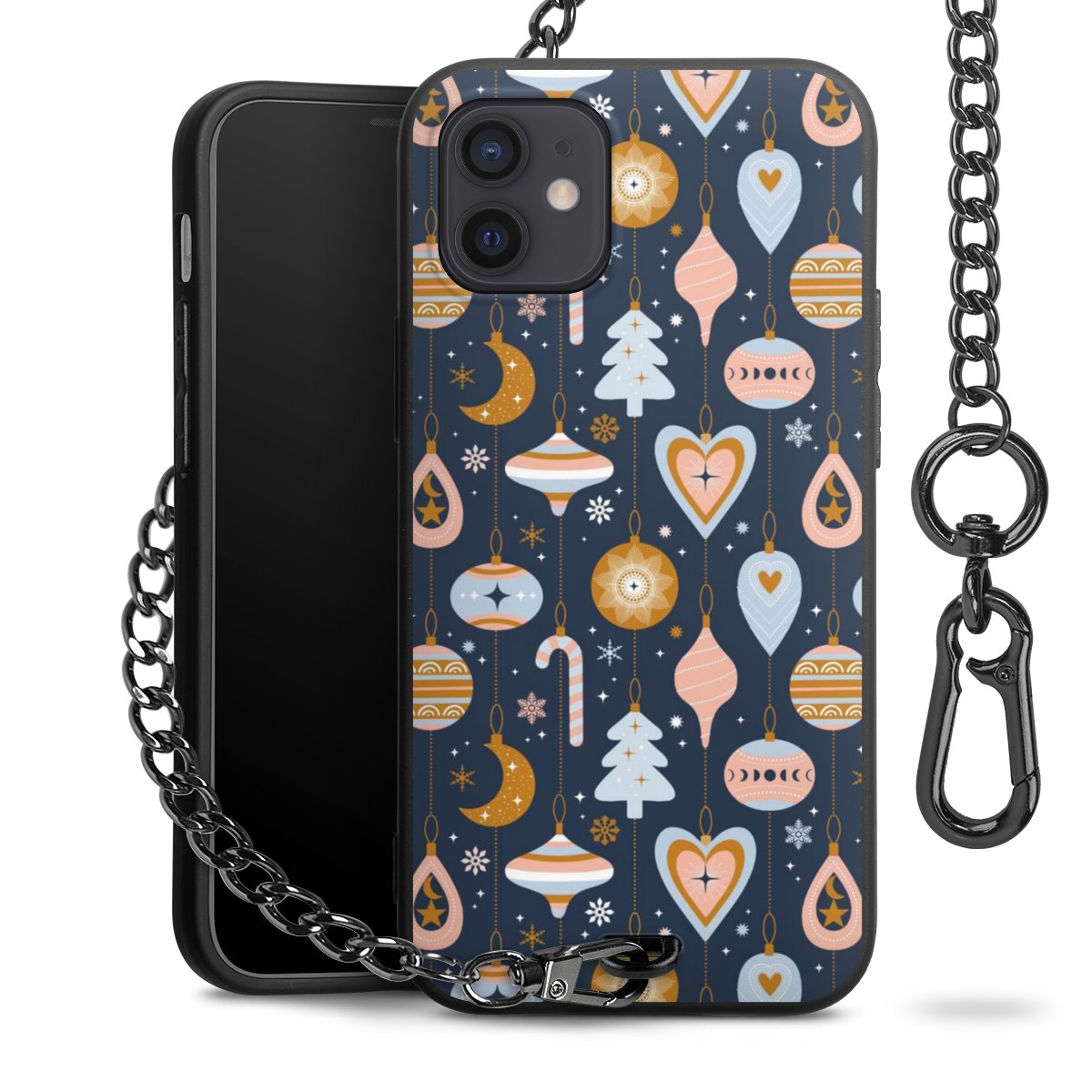 • Mattschwarze Handyhülle mit Metallkette