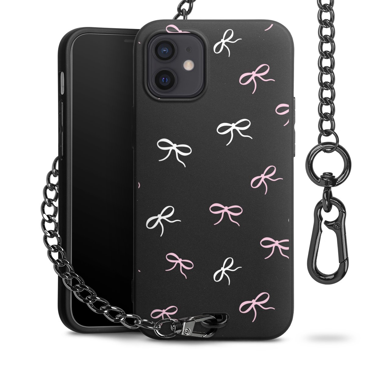 - Mattschwarze Handyhülle mit Metallkette