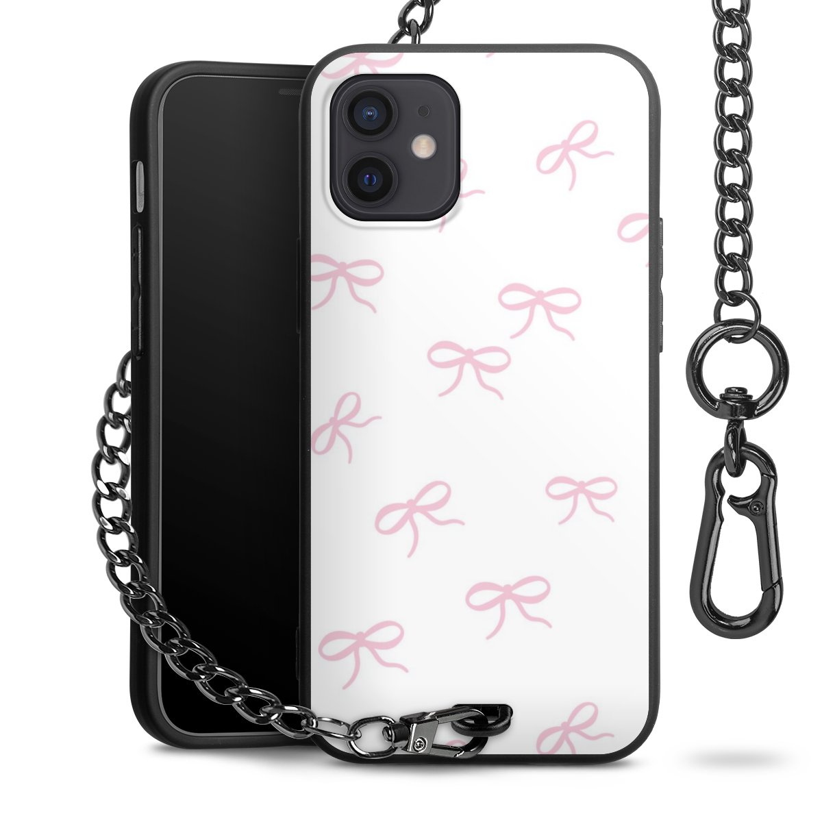- Mattschwarze Handyhülle mit Metallkette