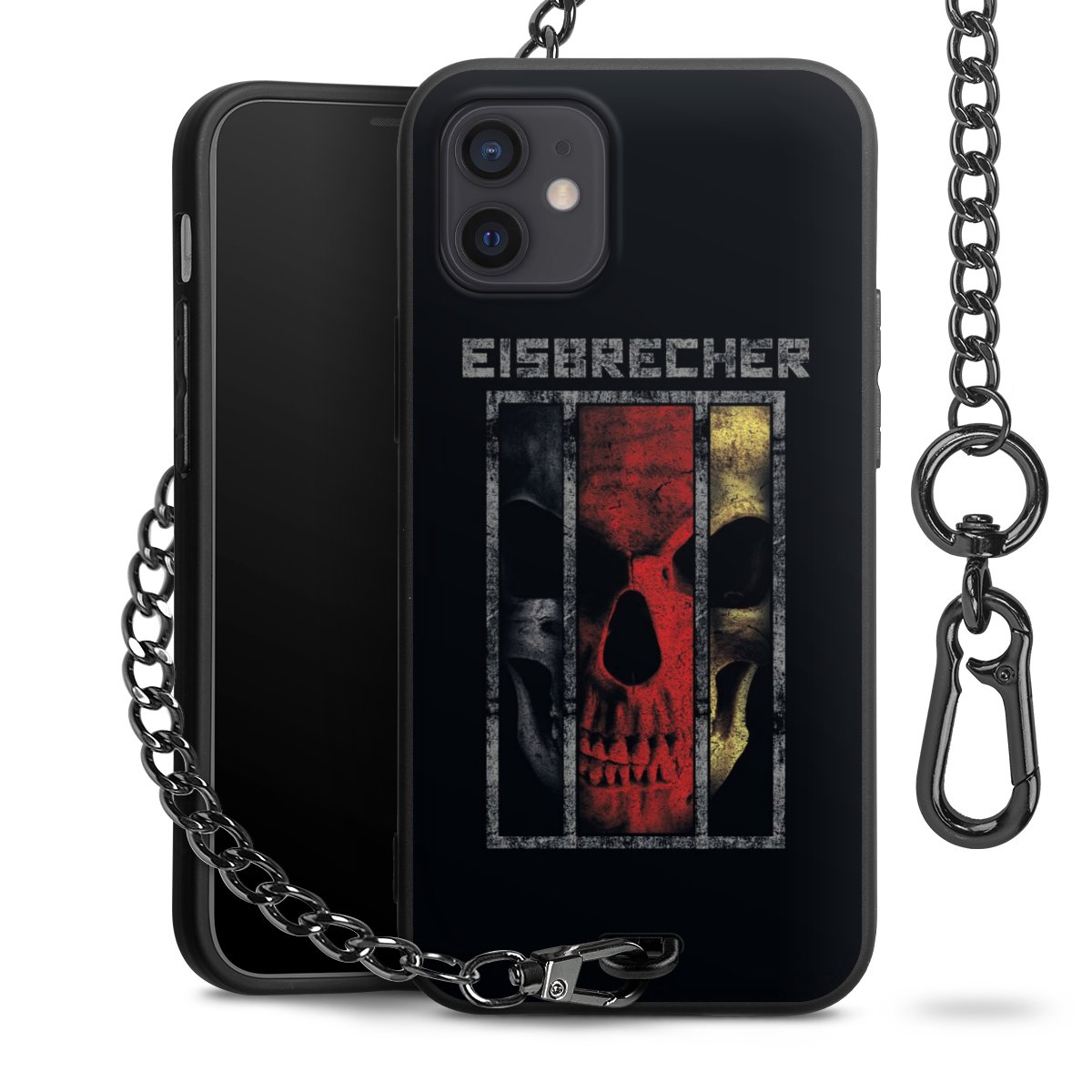 Die mattschwarze Silikon-Handyhülle besteht aus robustem TPU (thermoplastisches Polyurethan). Sie ist flexibel und schützt Dein Smartphone vor Stößen und Kratzern. Die Kette sowie der Karabinerhaken sind aus Metall in Gunmetal-Optik gefertigt. Für dieses Produkt kommen ausschließlich TÜV-geprüfte Materialien zum Einsatz.