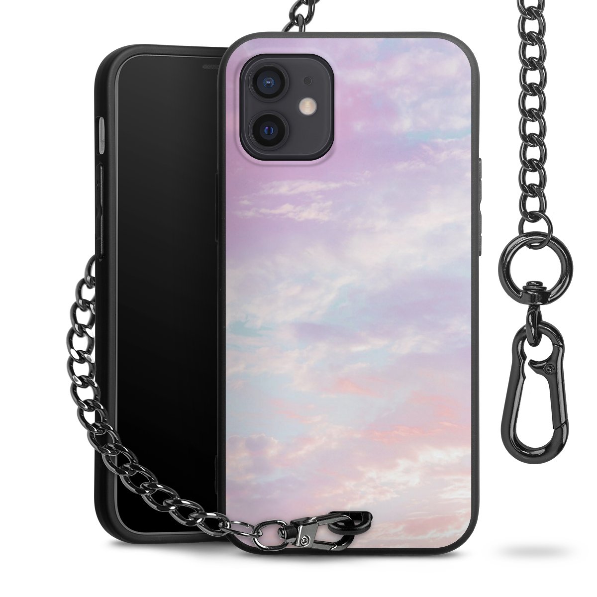 Die mattschwarze Silikon-Handyhülle besteht aus robustem TPU (thermoplastisches Polyurethan). Sie ist flexibel und schützt Dein Smartphone vor Stößen und Kratzern. Die Kette sowie der Karabinerhaken sind aus Metall in Gunmetal-Optik gefertigt. Für dieses Produkt kommen ausschließlich TÜV-geprüfte Materialien zum Einsatz.