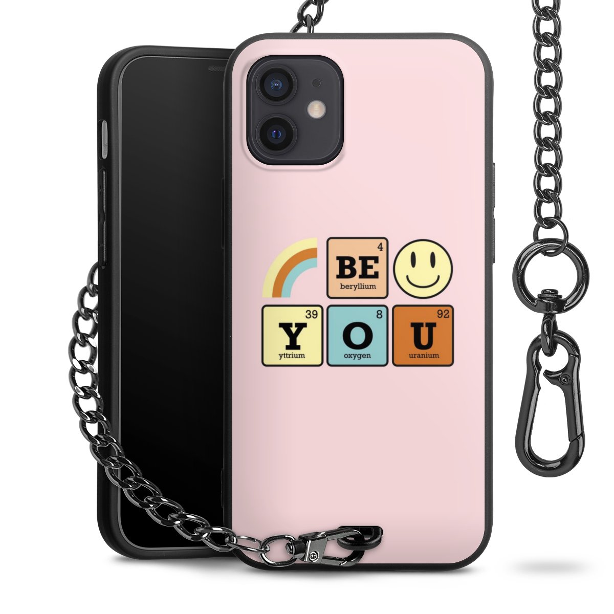 Die mattschwarze Silikon-Handyhülle besteht aus robustem TPU (thermoplastisches Polyurethan). Sie ist flexibel und schützt Dein Smartphone vor Stößen und Kratzern. Die Kette sowie der Karabinerhaken sind aus Metall in Gunmetal-Optik gefertigt. Für dieses Produkt kommen ausschließlich TÜV-geprüfte Materialien zum Einsatz.