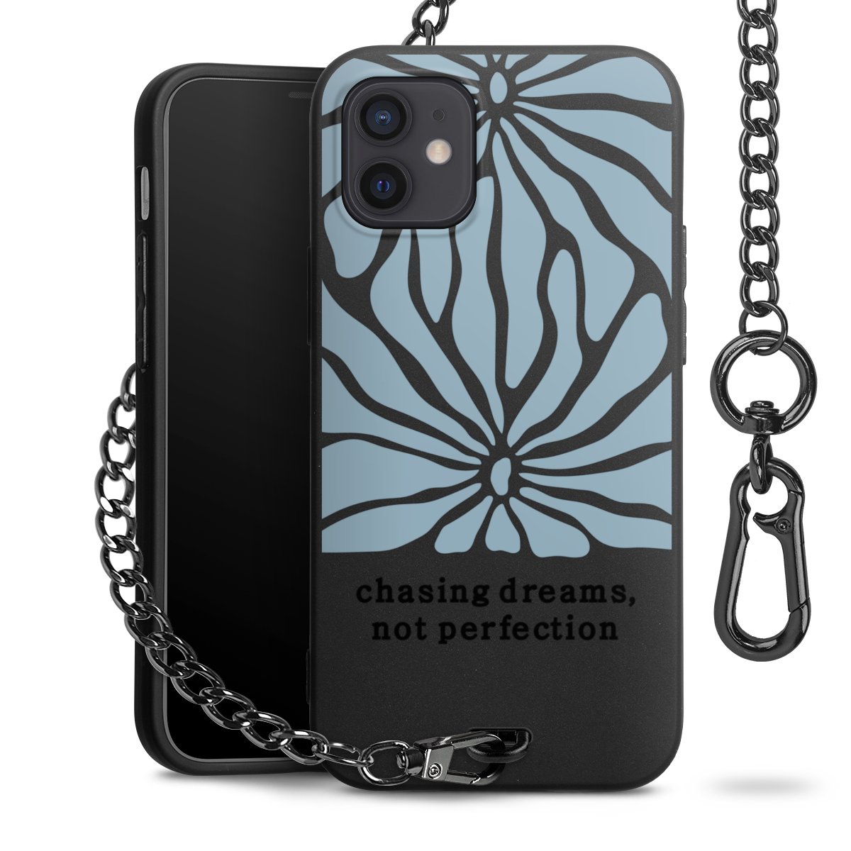 - Mattschwarze Handyhülle mit Metallkette