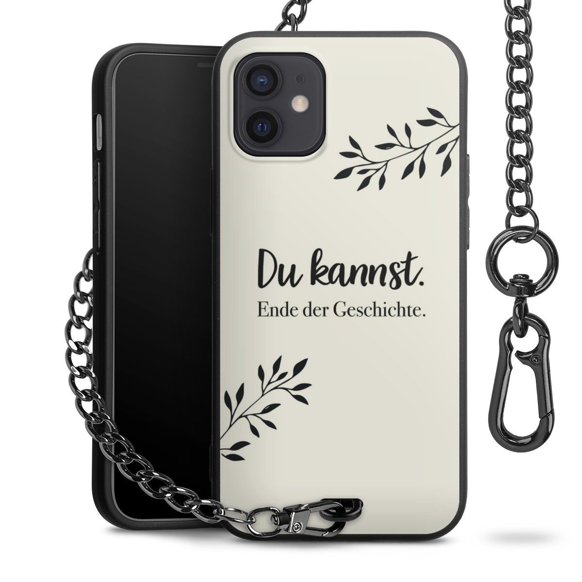 Die mattschwarze Silikon-Handyhülle besteht aus robustem TPU (thermoplastisches Polyurethan). Sie ist flexibel und schützt Dein Smartphone vor Stößen und Kratzern. Die Kette sowie der Karabinerhaken sind aus Metall in Gunmetal-Optik gefertigt. Für dieses Produkt kommen ausschließlich TÜV-geprüfte Materialien zum Einsatz.