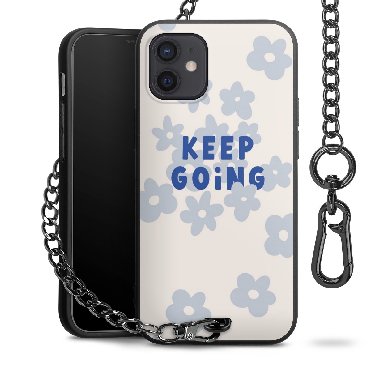 Die mattschwarze Silikon-Handyhülle besteht aus robustem TPU (thermoplastisches Polyurethan). Sie ist flexibel und schützt Dein Smartphone vor Stößen und Kratzern. Die Kette sowie der Karabinerhaken sind aus Metall in Gunmetal-Optik gefertigt. Für dieses Produkt kommen ausschließlich TÜV-geprüfte Materialien zum Einsatz.