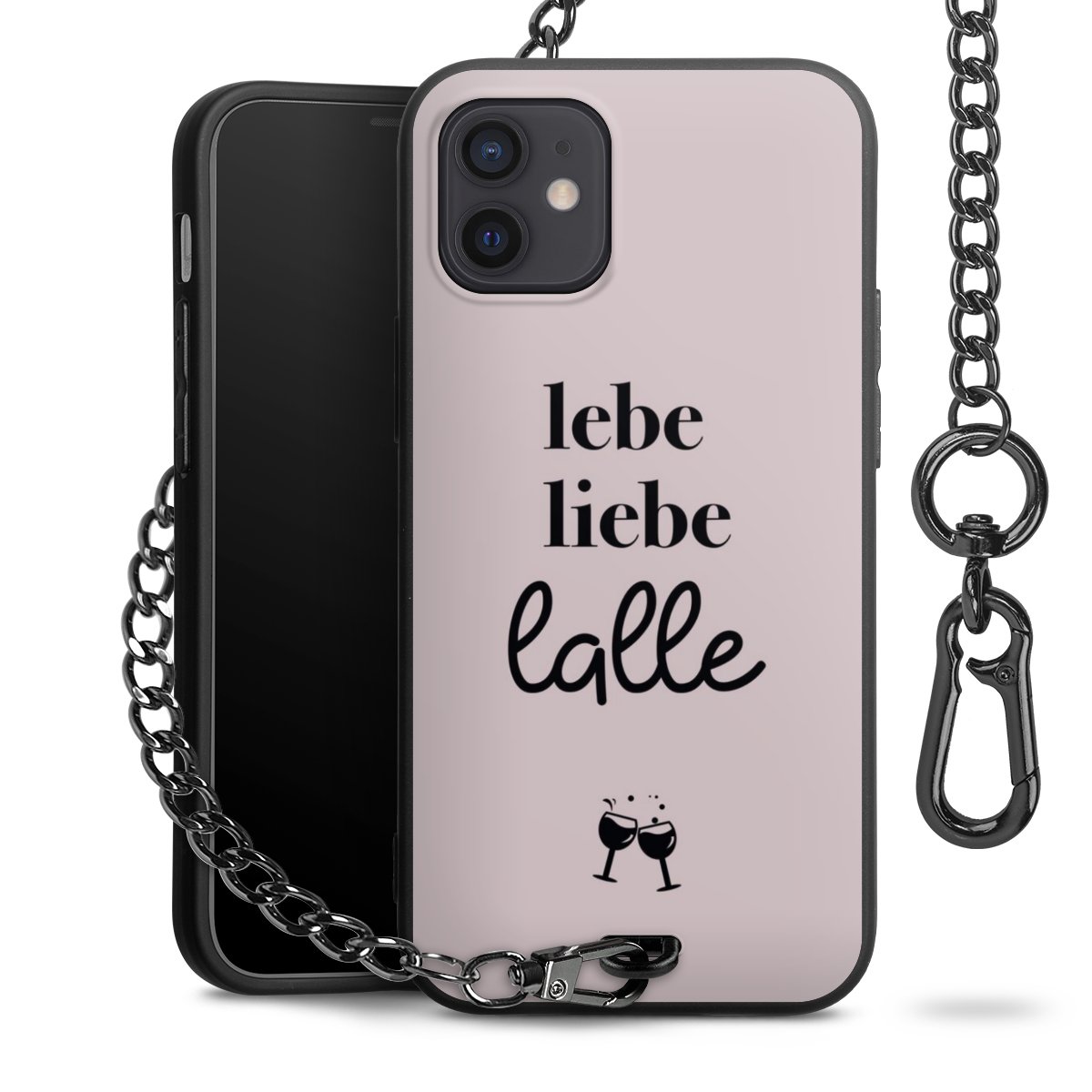 Die mattschwarze Silikon-Handyhülle besteht aus robustem TPU (thermoplastisches Polyurethan). Sie ist flexibel und schützt Dein Smartphone vor Stößen und Kratzern. Die Kette sowie der Karabinerhaken sind aus Metall in Gunmetal-Optik gefertigt. Für dieses Produkt kommen ausschließlich TÜV-geprüfte Materialien zum Einsatz.