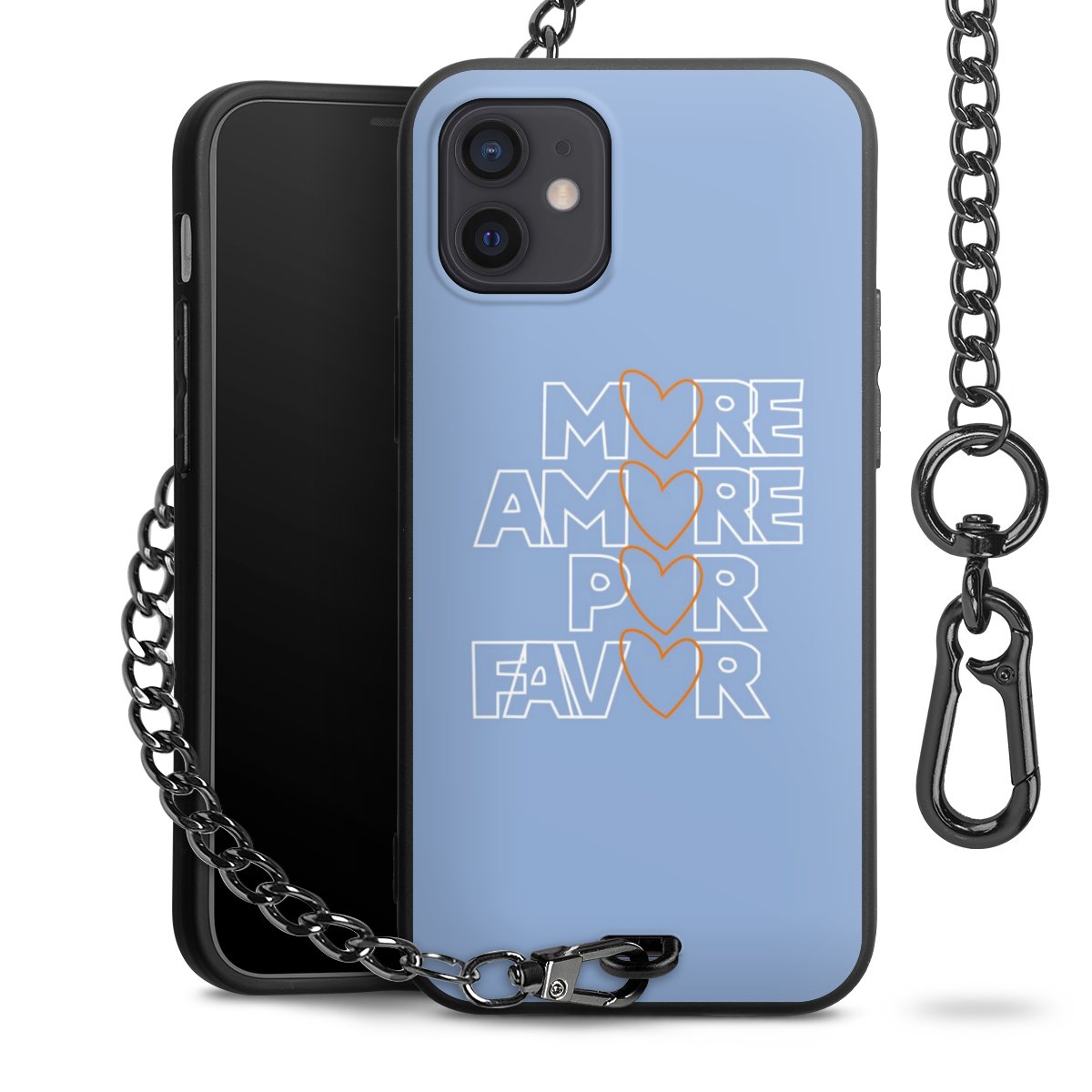 - Mattschwarze Handyhülle mit Metallkette