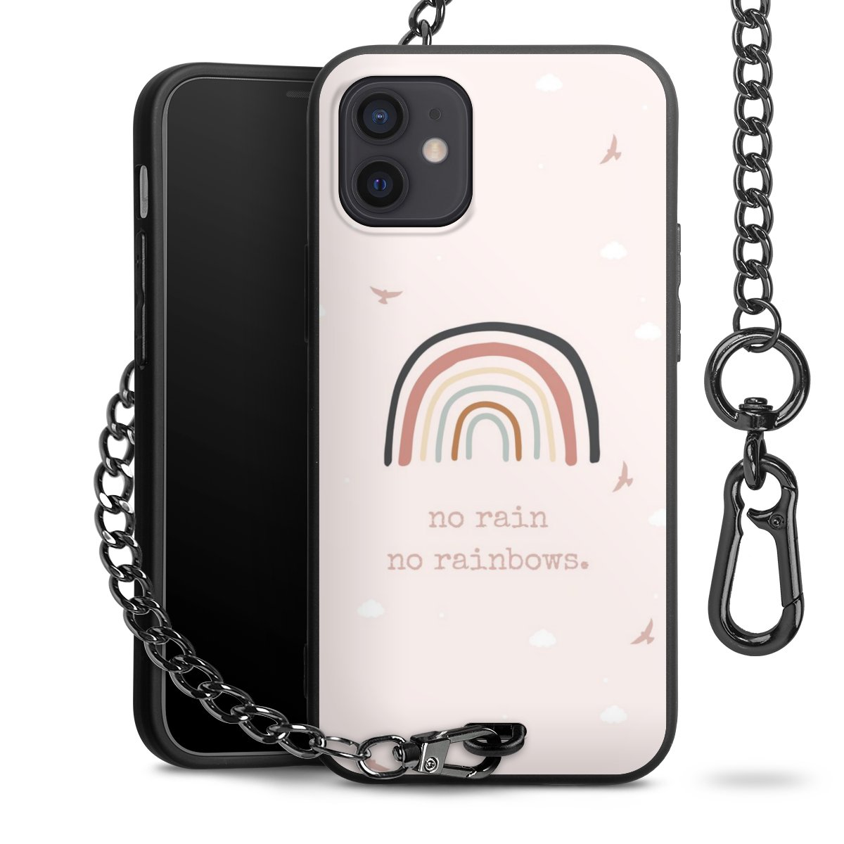 - Mattschwarze Handyhülle mit Metallkette