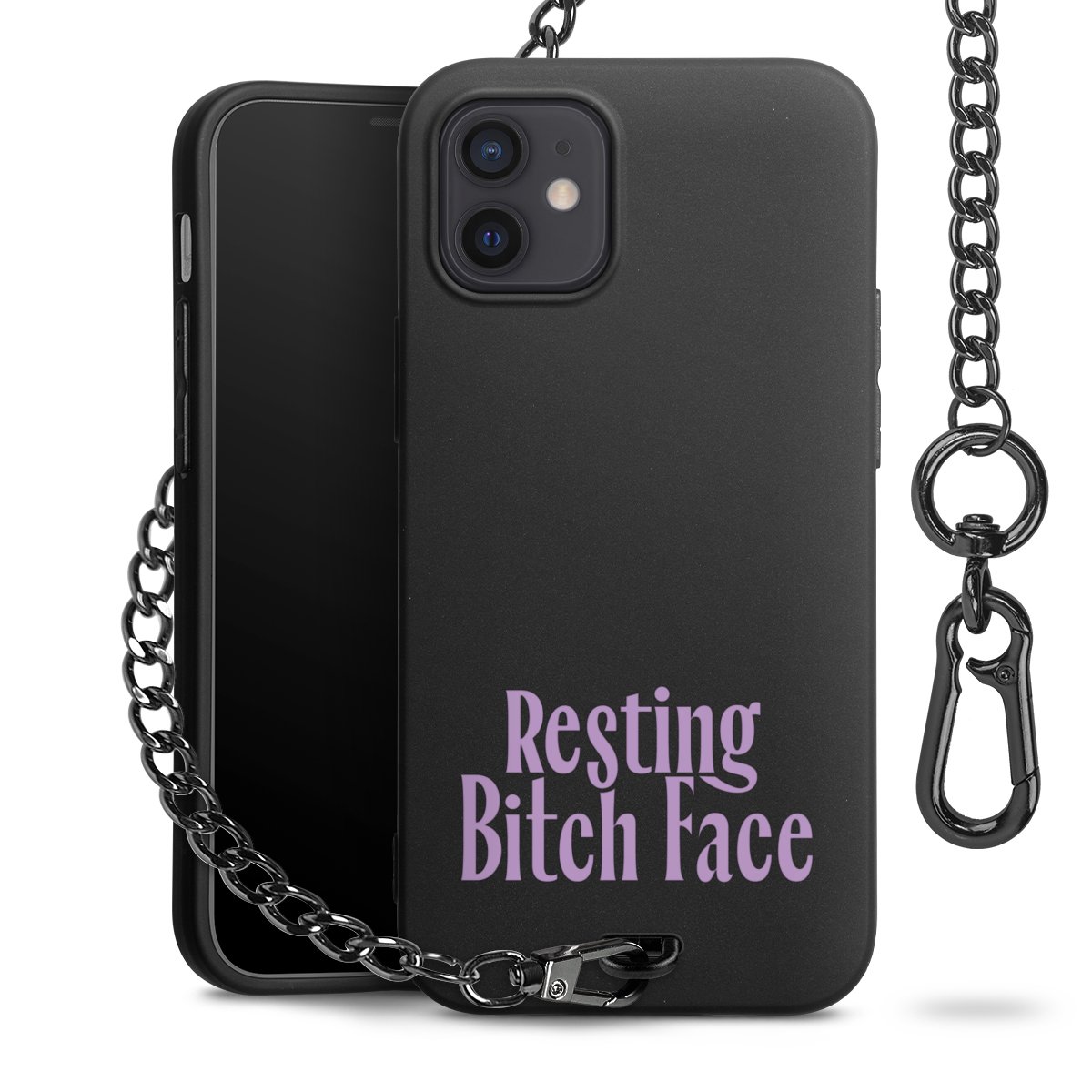 Die mattschwarze Silikon-Handyhülle besteht aus robustem TPU (thermoplastisches Polyurethan). Sie ist flexibel und schützt Dein Smartphone vor Stößen und Kratzern. Die Kette sowie der Karabinerhaken sind aus Metall in Gunmetal-Optik gefertigt. Für dieses Produkt kommen ausschließlich TÜV-geprüfte Materialien zum Einsatz.