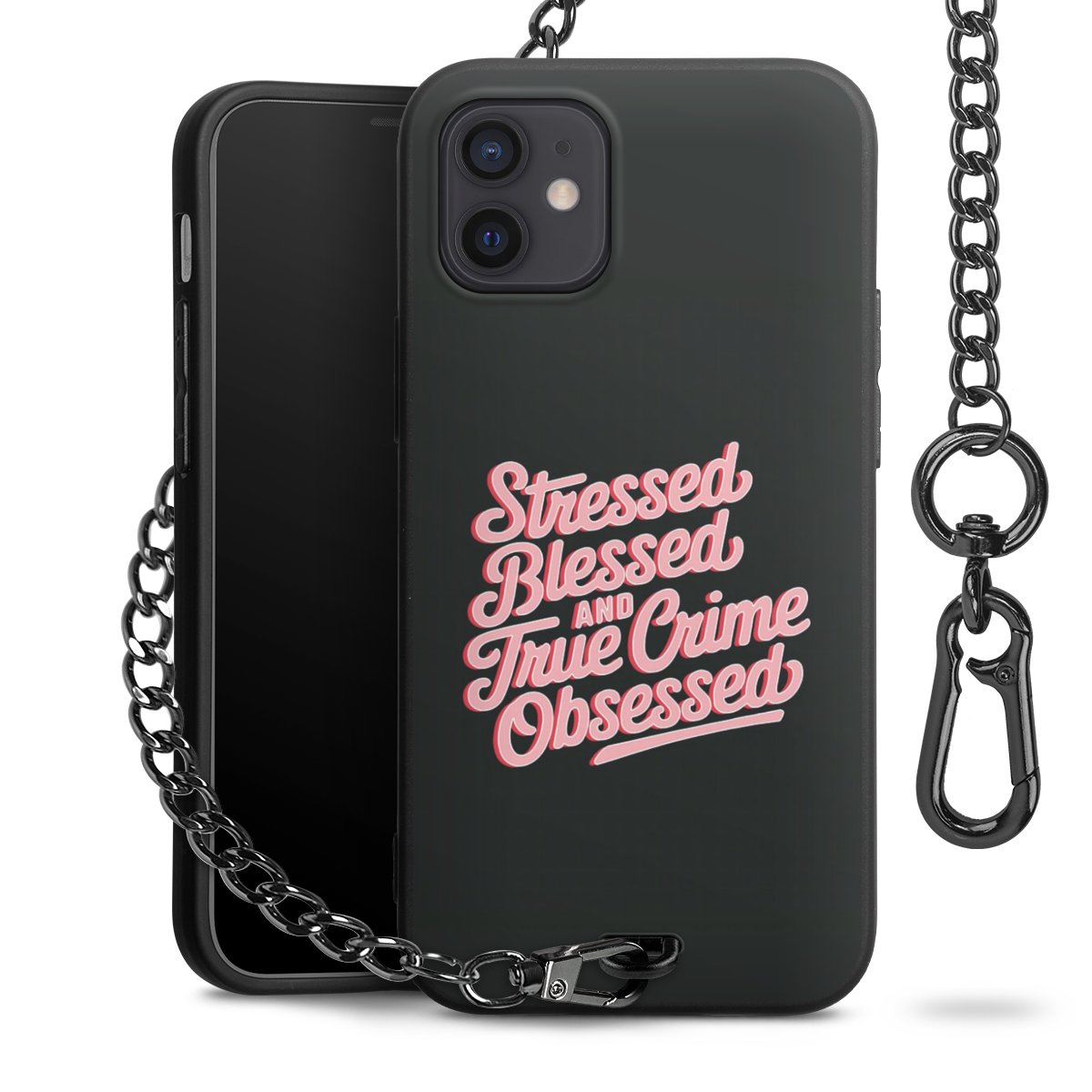 • Mattschwarze Handyhülle mit Metallkette