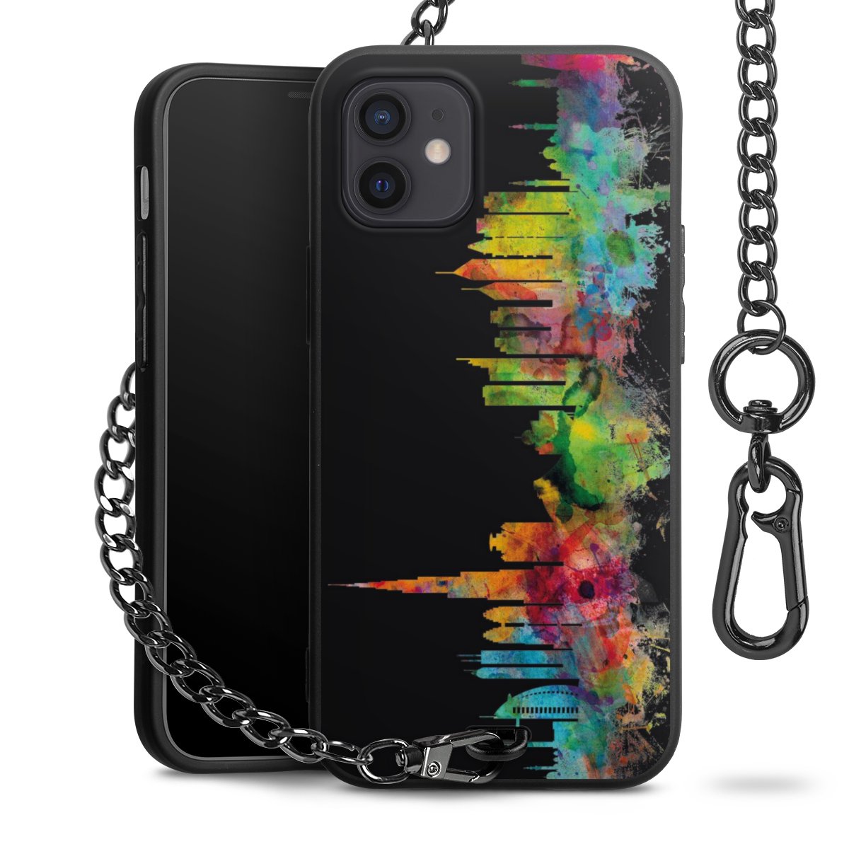 Die mattschwarze Silikon-Handyhülle besteht aus robustem TPU (thermoplastisches Polyurethan). Sie ist flexibel und schützt Dein Smartphone vor Stößen und Kratzern. Die Kette sowie der Karabinerhaken sind aus Metall in Gunmetal-Optik gefertigt. Für dieses Produkt kommen ausschließlich TÜV-geprüfte Materialien zum Einsatz.