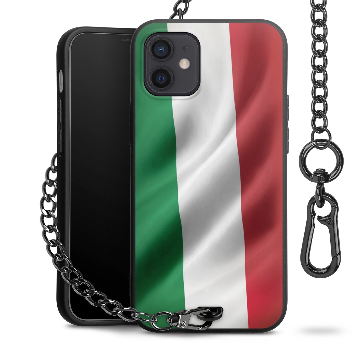 Die mattschwarze Silikon-Handyhülle besteht aus robustem TPU (thermoplastisches Polyurethan). Sie ist flexibel und schützt Dein Smartphone vor Stößen und Kratzern. Die Kette sowie der Karabinerhaken sind aus Metall in Gunmetal-Optik gefertigt. Für dieses Produkt kommen ausschließlich TÜV-geprüfte Materialien zum Einsatz.